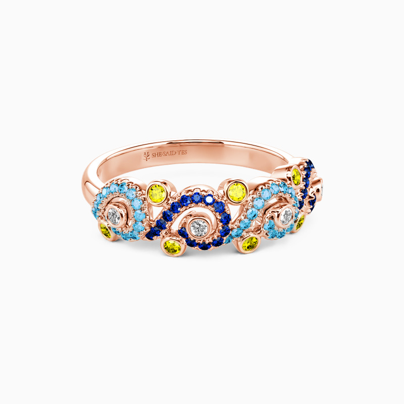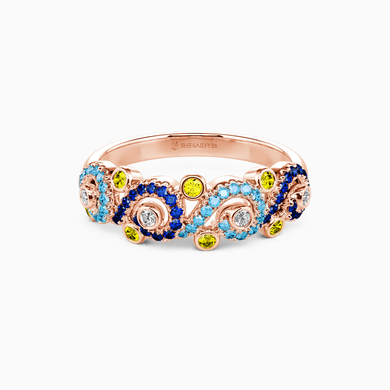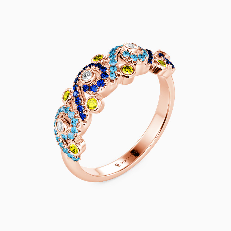 This wedding band is brought to you in a stunning display of style and craftsmanship. It is a combination of light blue, midnight blue, yellow gold, and white stones, and the ring is a premium miniature version of Van Gogh’s timeless Starry Night painting. Heart, left silent by the pure night, seems calm beneath the unmeasured sky. May you could trust your dreams and be guided by your heart!