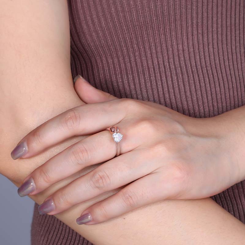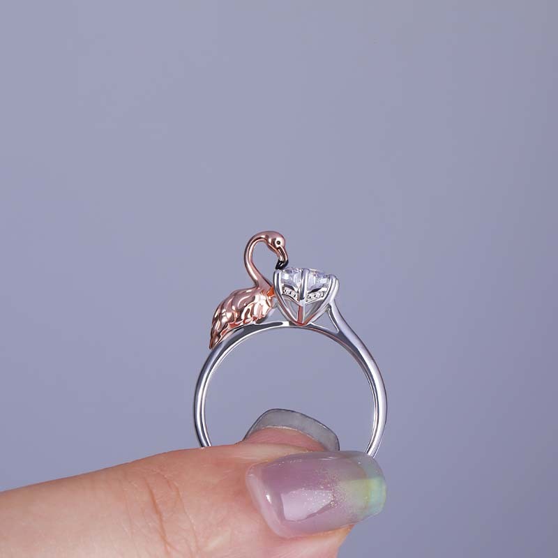 Show your love and passion with this sophisticated ring is an ideal choice. Crafted with the sleek metal of your choice, it embeds a heart-shaped center stone glistening with radiance. Exquisite in the elegant flamingo, this graceful piece will lend you a charming look in daily life.