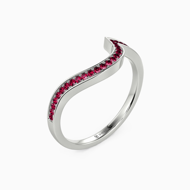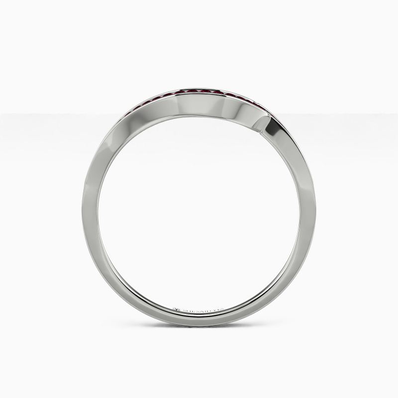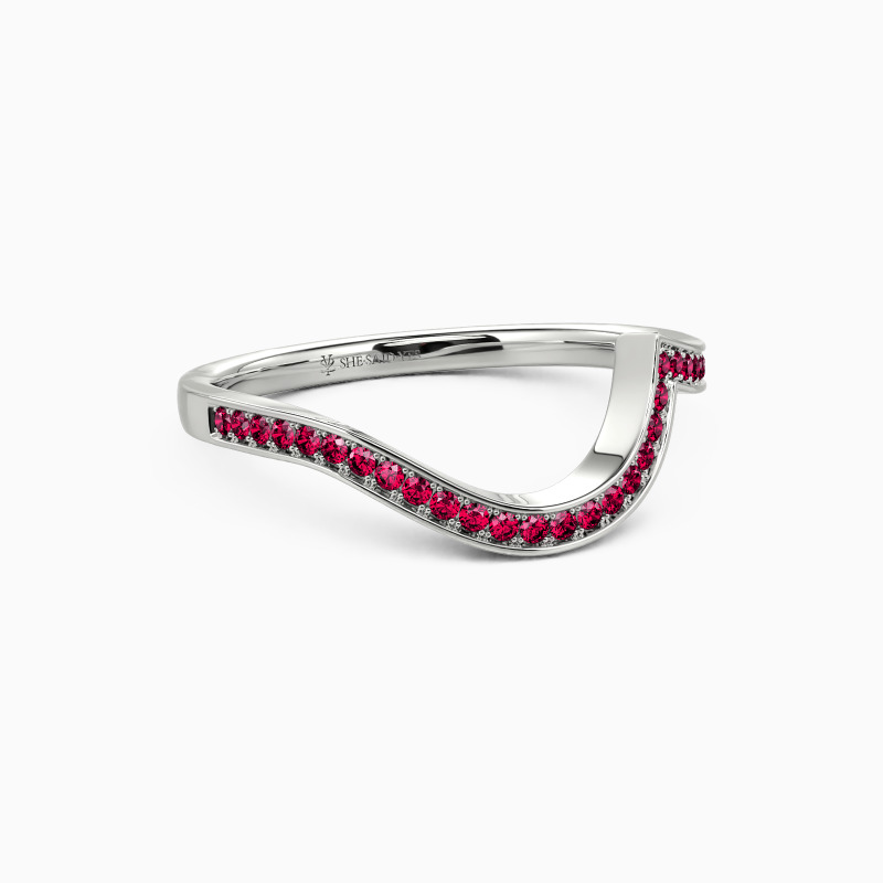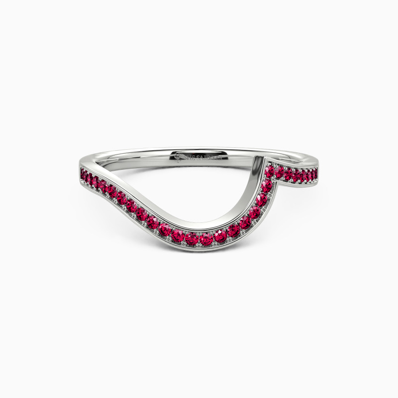 Dainty and stylish. This distinctive wedding ring features a row of shimmering gems set neatly in a curvy channel setting. Comfort-fit rings have a rounded interior designed for the most comfortable everyday wear.