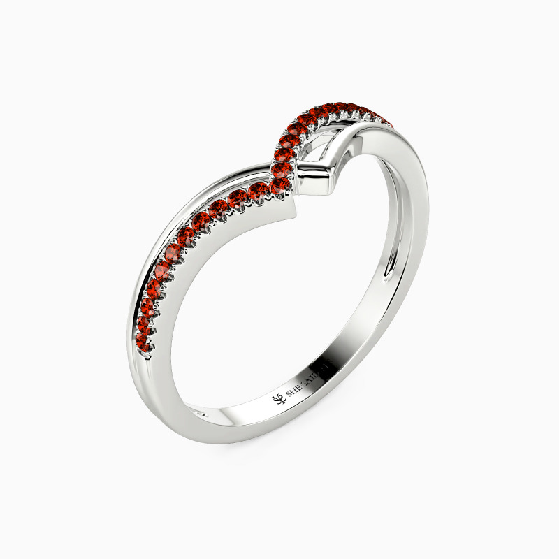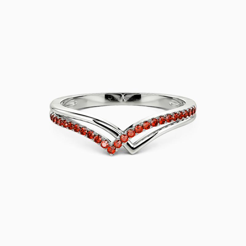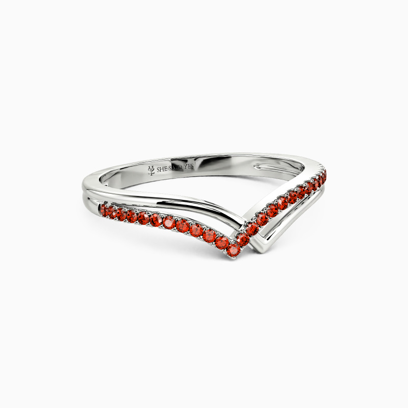 Unique and elegant. Featuring the overlapping double V-shaped shank, formed by polished ribbon and paving stones, it shows the vivid profile of the mountains, accentuating the distinctive design of this special piece. Wearing it solo or pairing it with other pieces from SHE·SAID·YES gives you a charming impression.