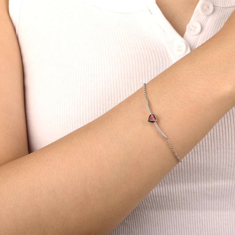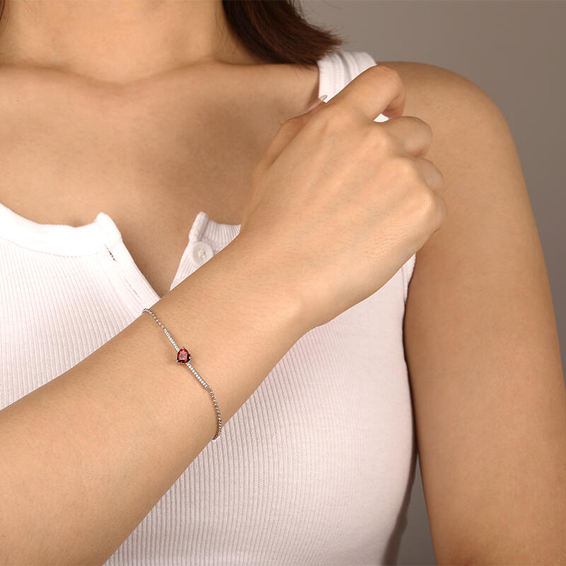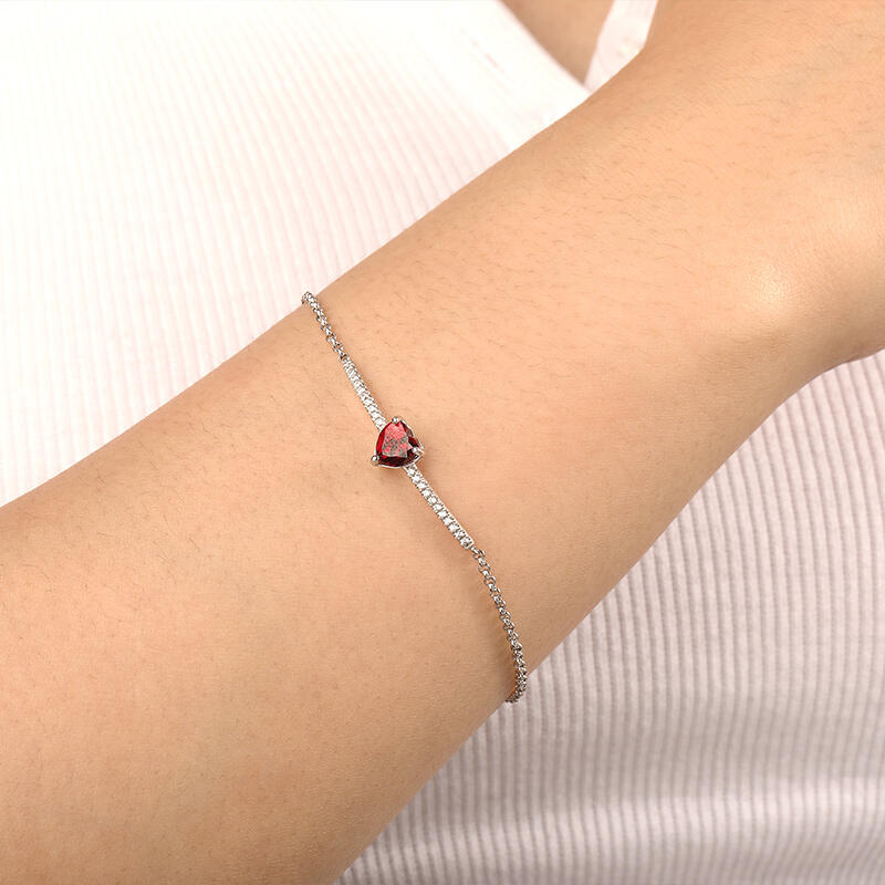 Surprise her with this refined bracelet won't be wrong. The glistening heart-shaped stone stands in the center of the shining paved line. Blending simplicity with sparkle at the same time, this distinctive design expresses the pure and bold love between lovers.