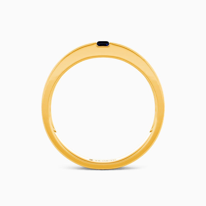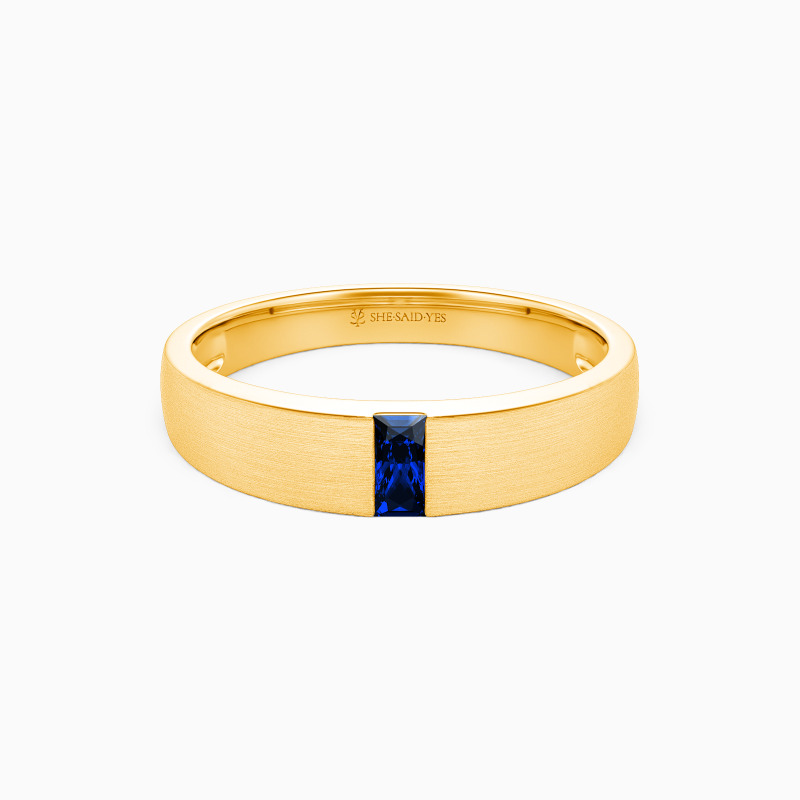 Simple yet stylish. Existing in the minimalist design and modern style, this wedding band features an emerald-cut gem in the tension setting on the matte shank. With the flat edges at all points, this precious piece from SHE·SAID·YES will provide you with comfort and a touch of masculinity.