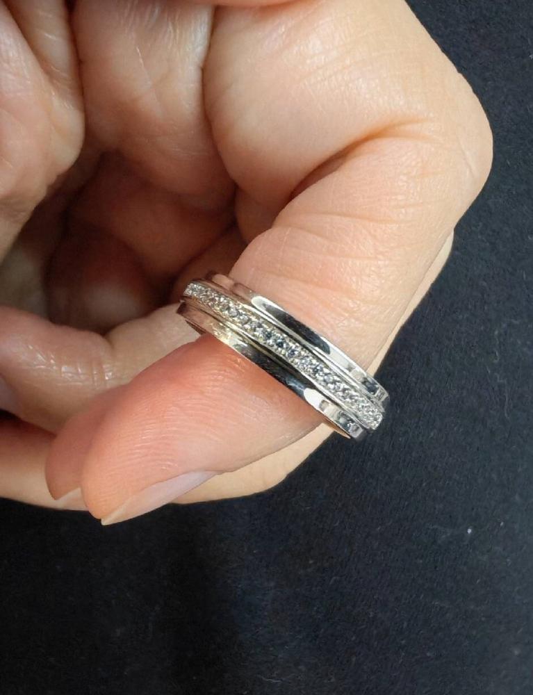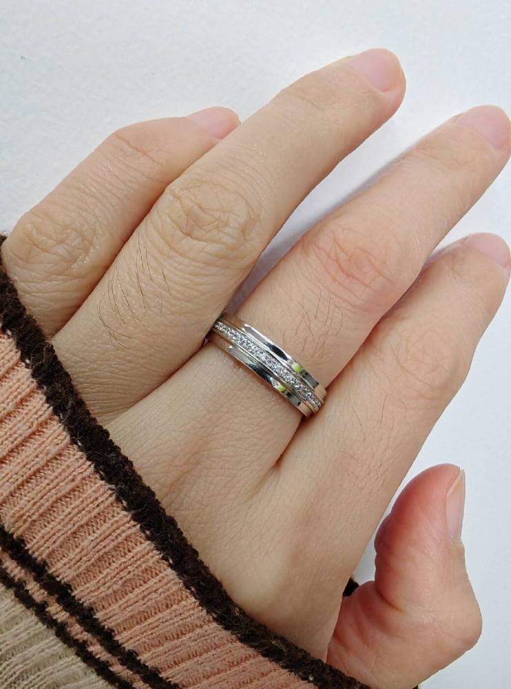 This classic wedding band is embellished with glistening round stones in a row. They are nestled within the lustrous walls of the channel setting and radiate ethereal brilliance. Wear it solo to match your everyday look, or stack with the matching engagement ring to leave an impressible memory. I'm so glad that I'm stuck with you for the rest of my life.