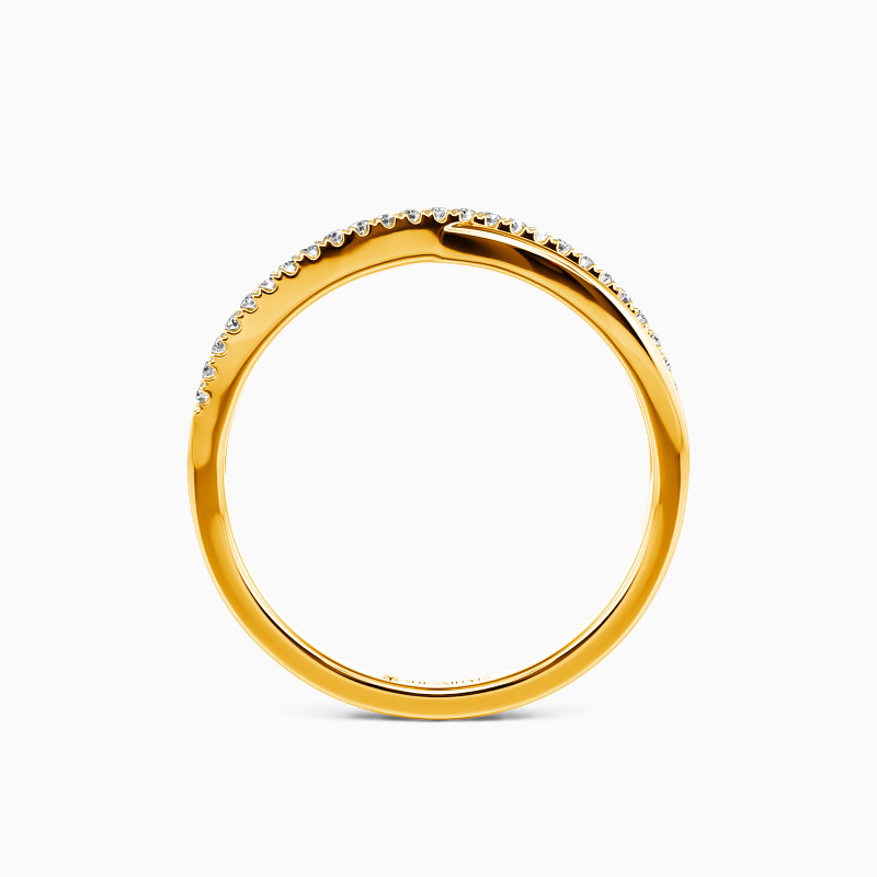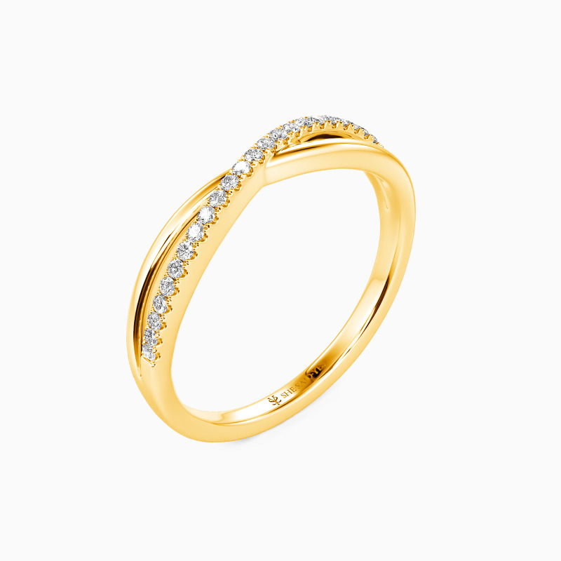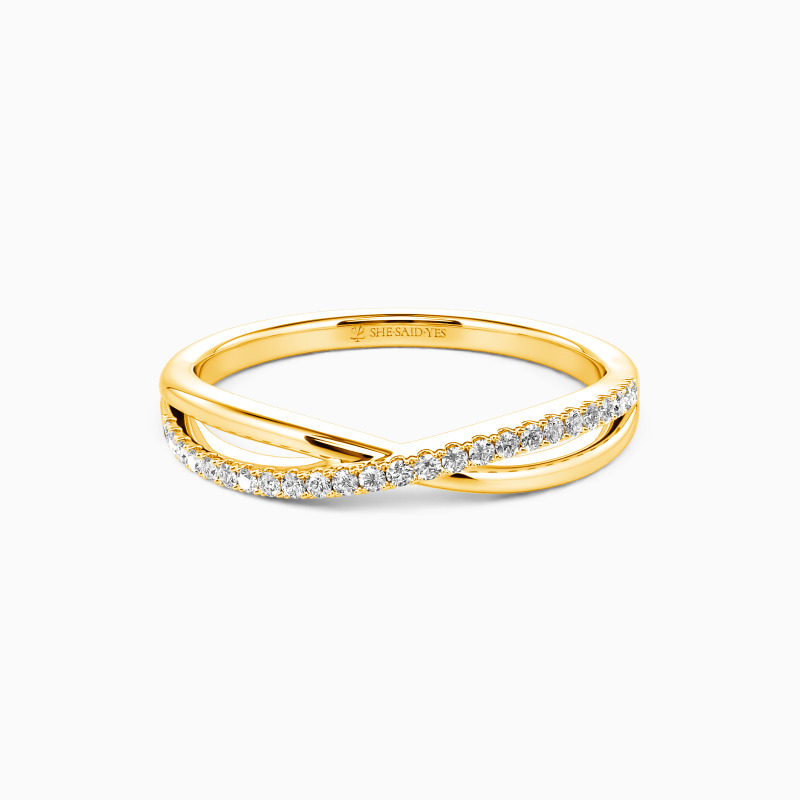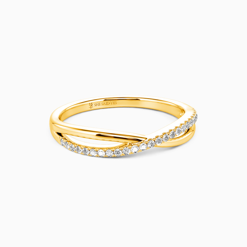 For the bride searching for effortless radiance, look no further than this wedding ring from SHE·SAID·YES. Delicate twisting matching bands-one is paved, and the other is polished; wearing this ring will make you feel like a princess.