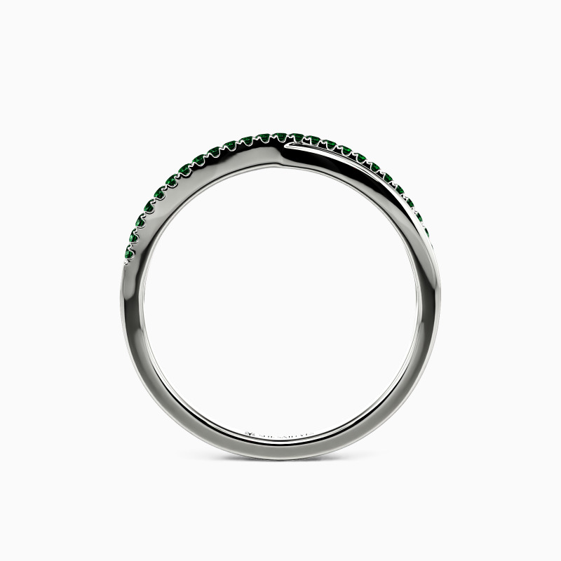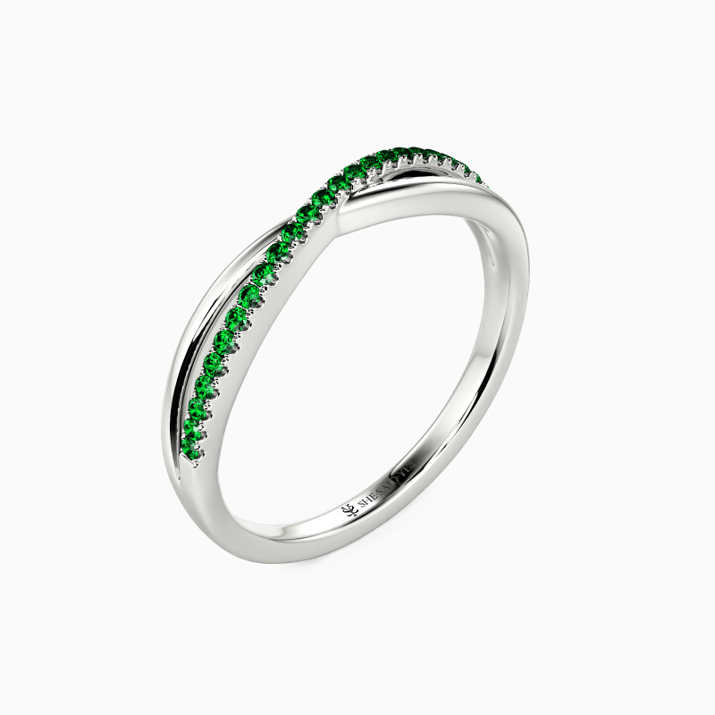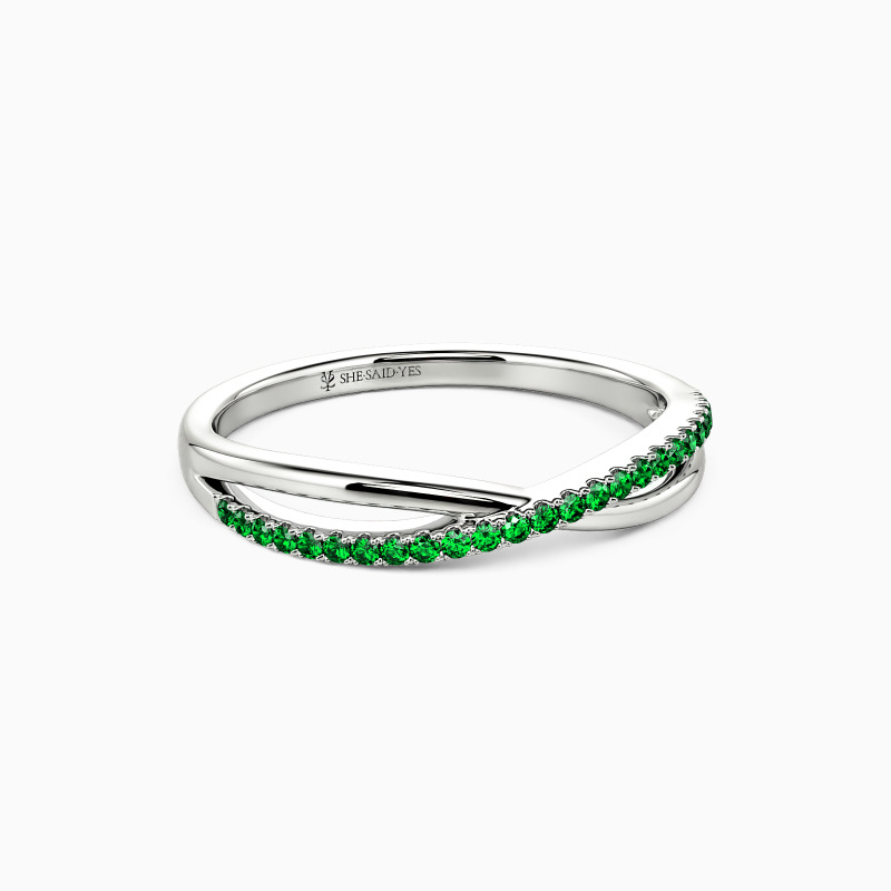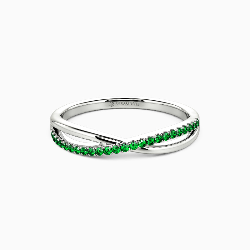 For the bride searching for effortless radiance, look no further than this wedding ring from SHE·SAID·YES. Delicate twisting matching bands-one is paved, and the other is polished; wearing this ring will make you feel like a princess.