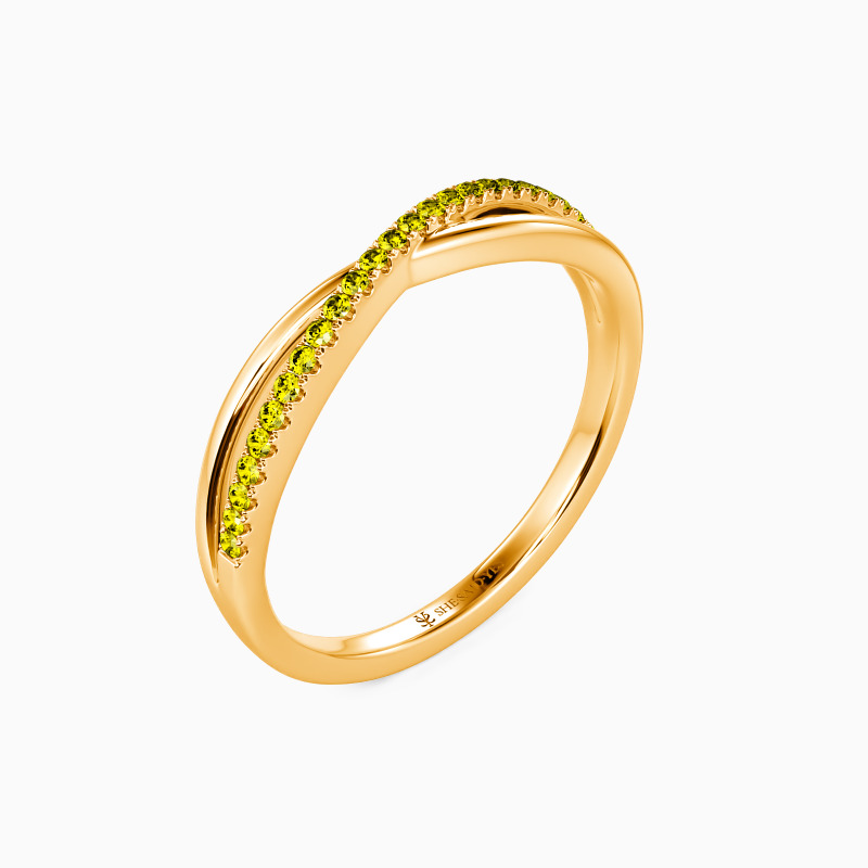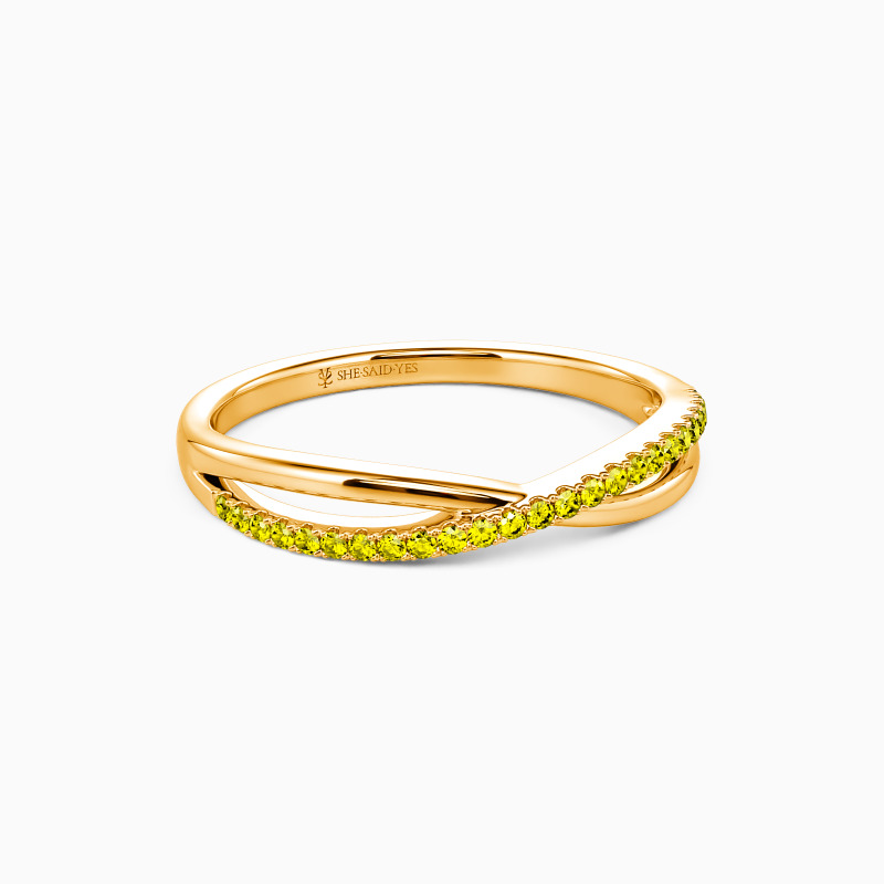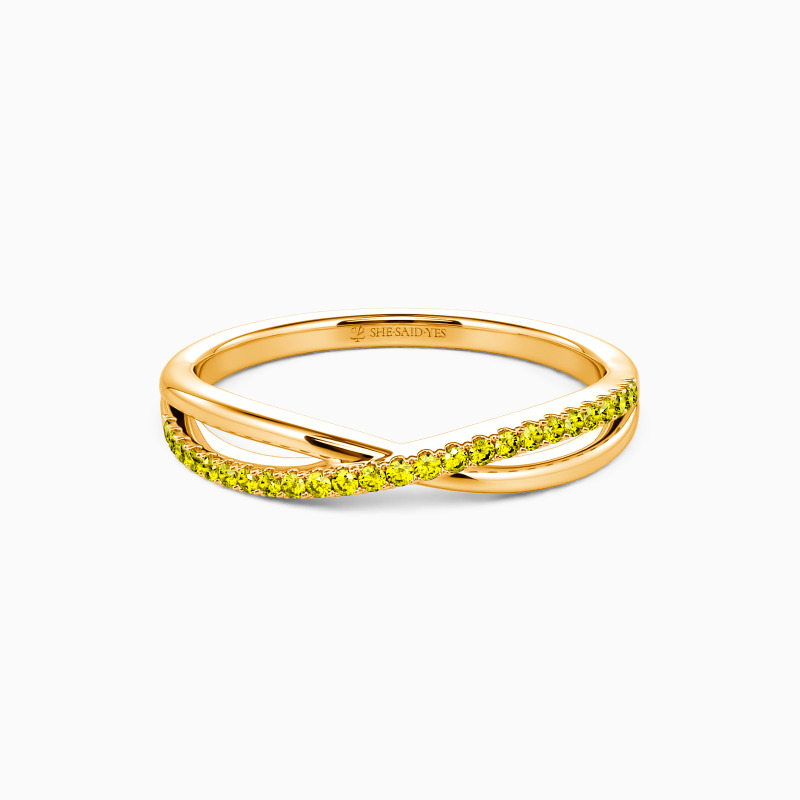 For the bride searching for effortless radiance, look no further than this wedding ring from SHE·SAID·YES. Delicate twisting matching bands-one is paved, and the other is polished; wearing this ring will make you feel like a princess.