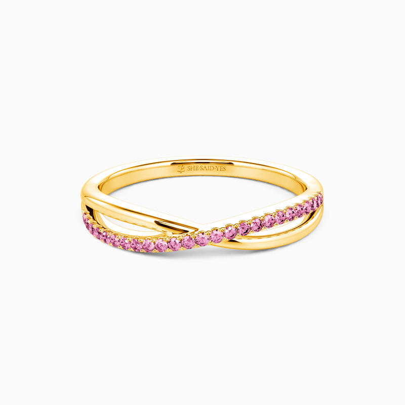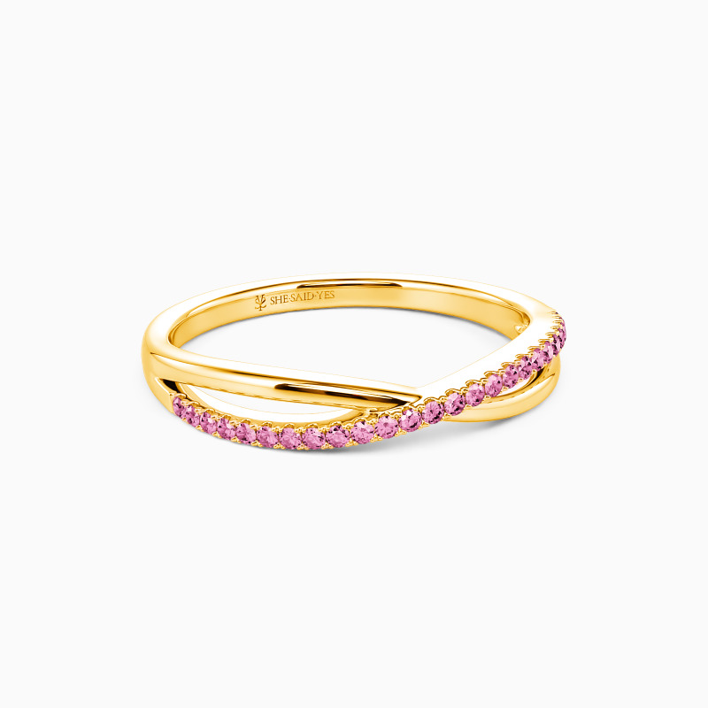 For the bride searching for effortless radiance, look no further than this wedding ring from SHE·SAID·YES. Delicate twisting matching bands-one is paved, and the other is polished; wearing this ring will make you feel like a princess.
