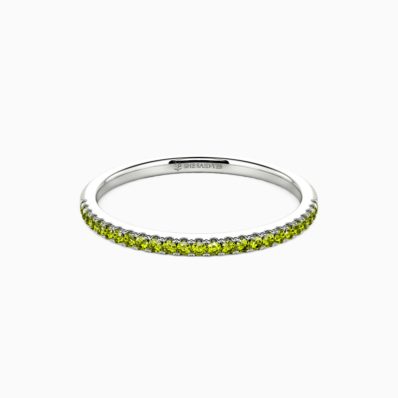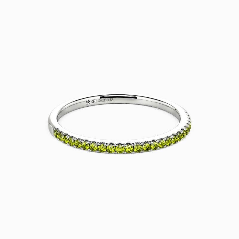 A truly classic wedding ring lined with sparkling stones in a shared prong setting. This gorgeous ring is sure to capture her heart with this elegant design and brilliant stones. Also great as an anniversary band or a stacker ring.