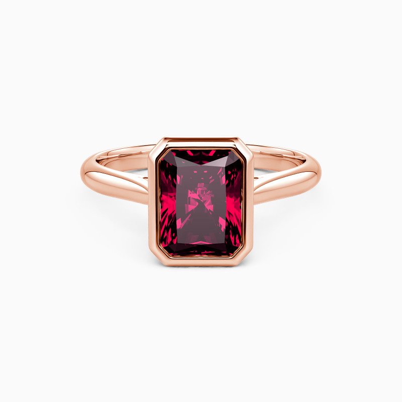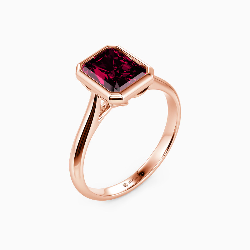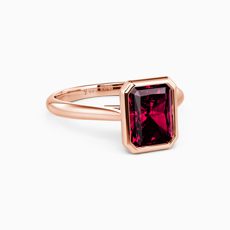 Designed with the ultimate minimalist aesthetic, SHE·SAID·YES provides you with a gorgeous solitaire engagement ring. Featuring a brilliant radiant-cut gem in a precious bezel, this piece shines stunningly from the center. A buffed shank in tapered style compliments its elegance and brings you a more delicate beauty.