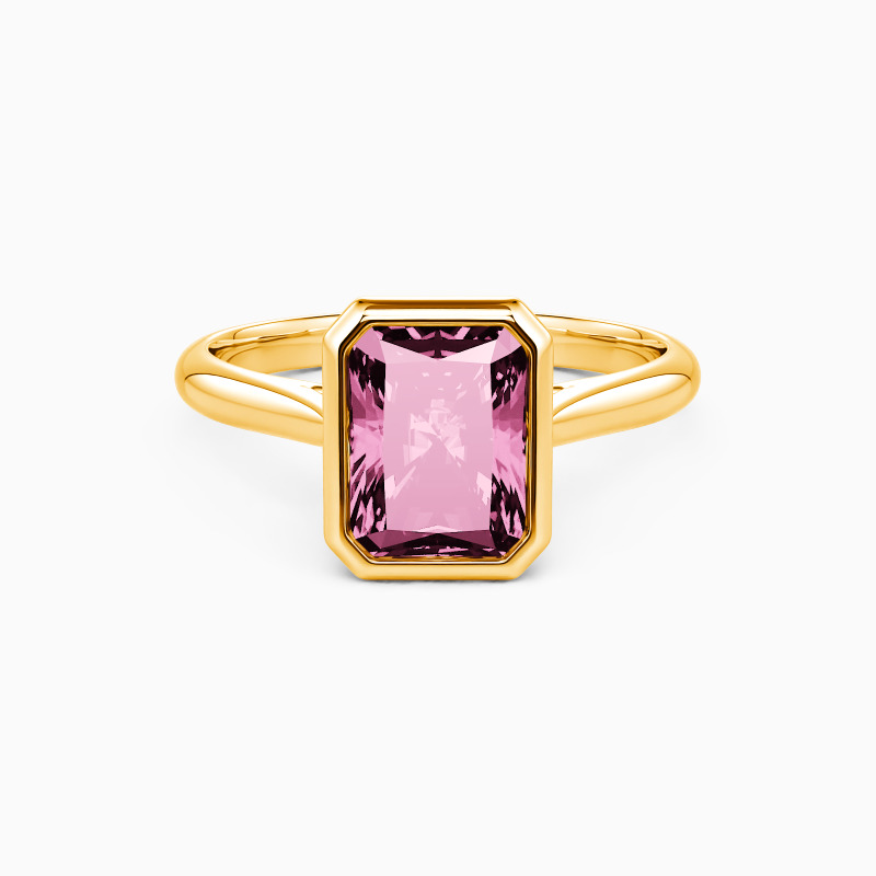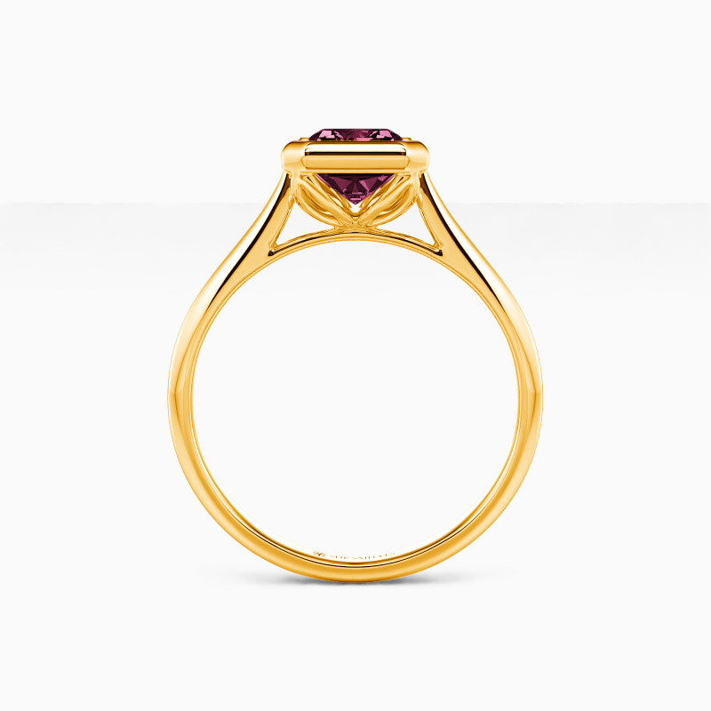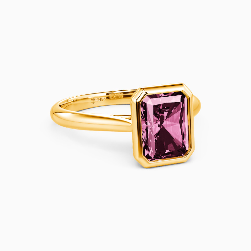 Designed with the ultimate minimalist aesthetic, SHE·SAID·YES provides you with a gorgeous solitaire engagement ring. Featuring a brilliant radiant-cut gem in a precious bezel, this piece shines stunningly from the center. A buffed shank in tapered style compliments its elegance and brings you a more delicate beauty.