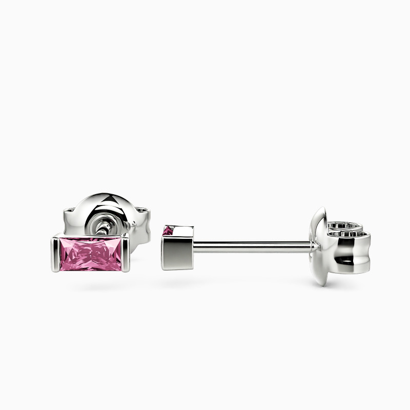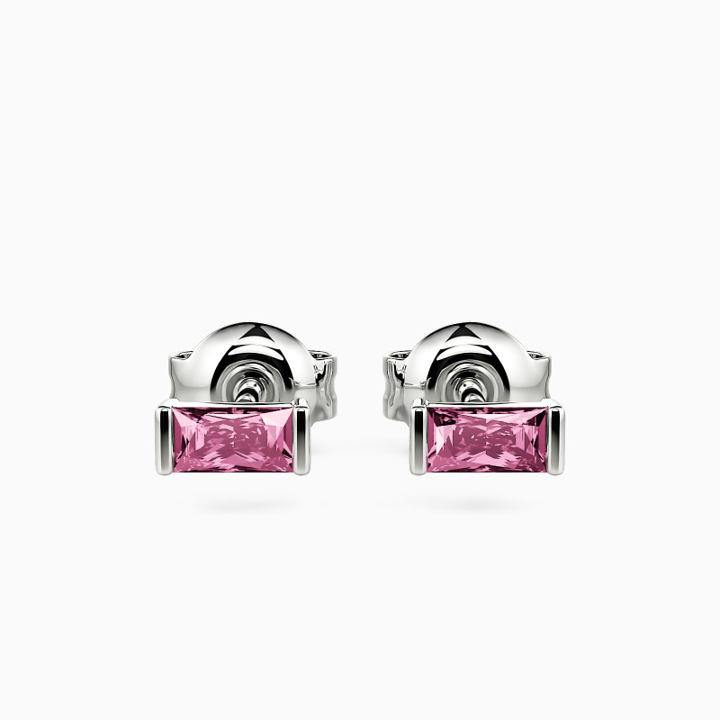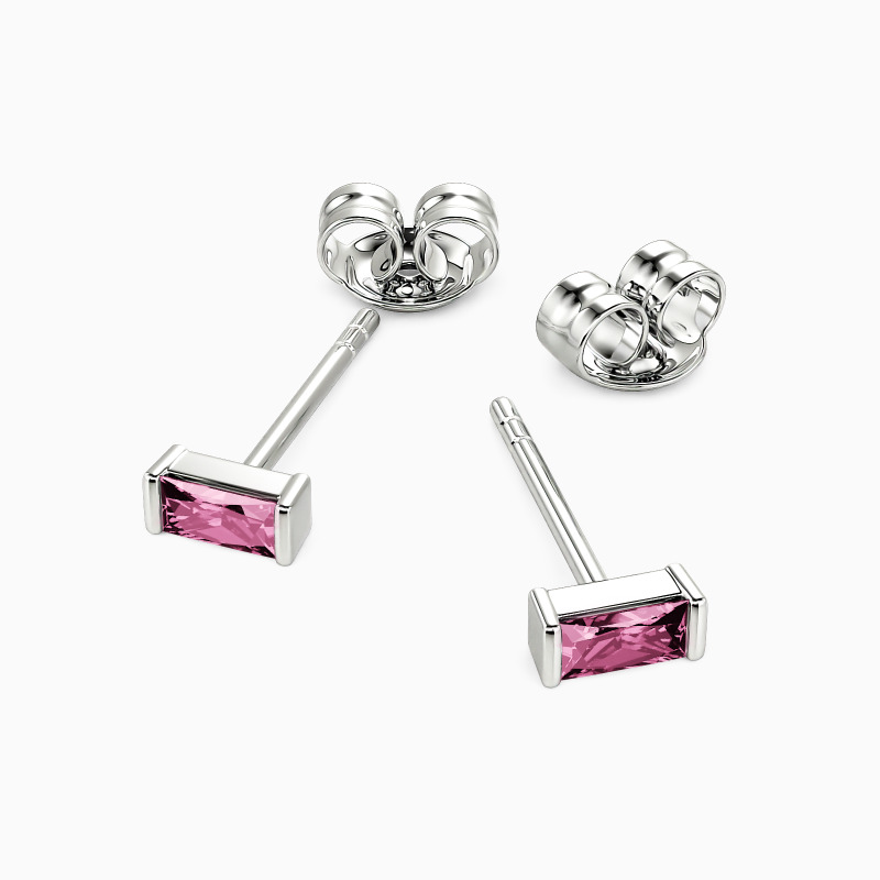 Style and dazzling accents take these stud earrings from simple to extra bling. With an effortlessly sleek design, each earring flaunts a glittering baguette-cut stone in a bezel setting. A dainty look she'll choose to wear often.