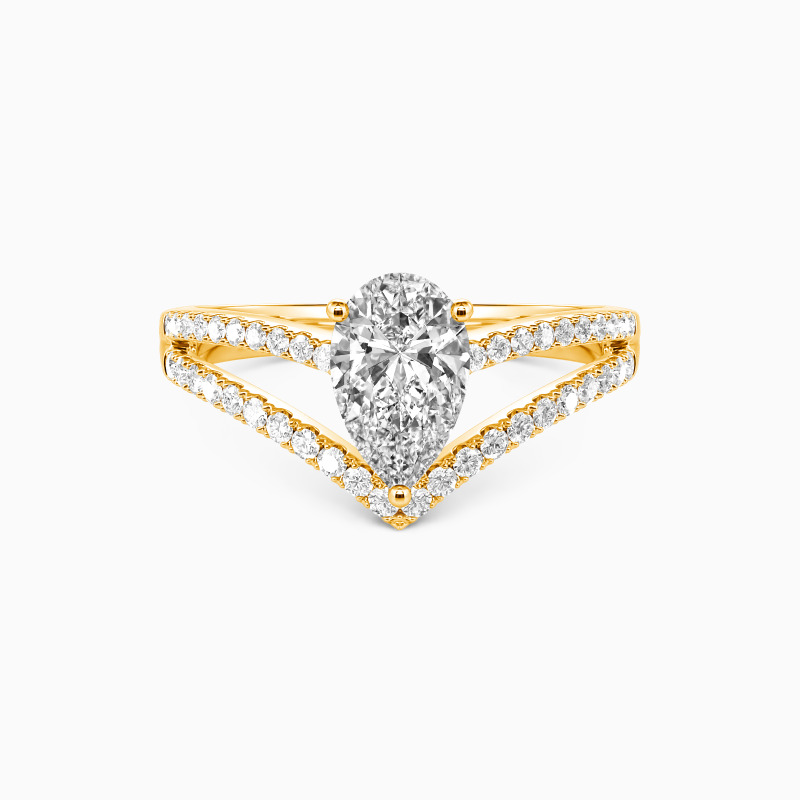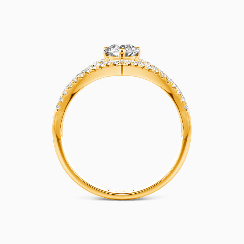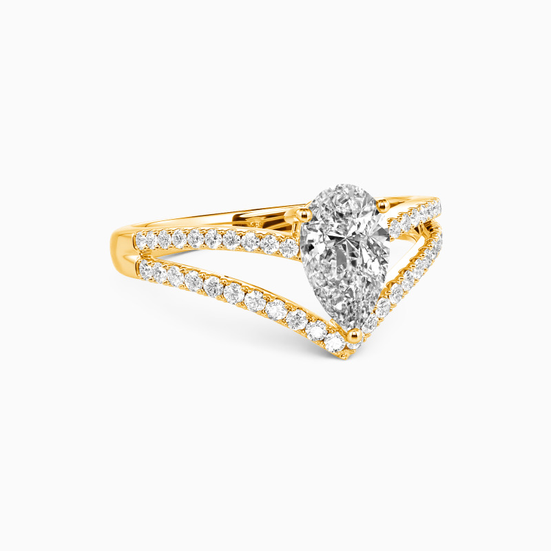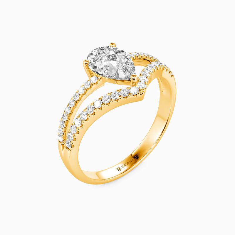 Perfect for the stylish bride-to-be seeking a contemporary engagement ring. A scintillating pear-cut stone is held in the center to attract your eyes. And an array of tiny sparkling pavéd accents are studded on the split shank to enhance the overall brilliance. You are the source of my joy, the center of my world and the whole of my world.