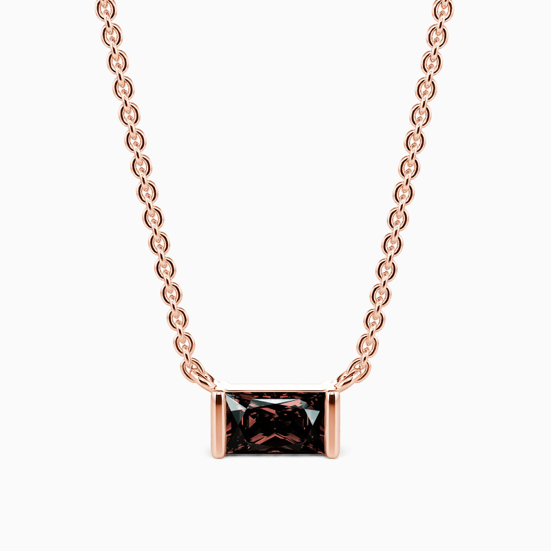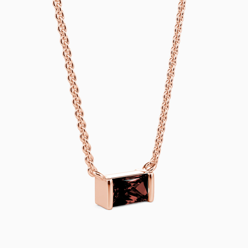 With an effortlessly sleek design, the necklace flaunts a glittering baguette-cut stone in the center. It bounces light from every angle in a channel setting. This incredible piece is sure to add extra brilliance to your contemporary jewelry wardrobe.