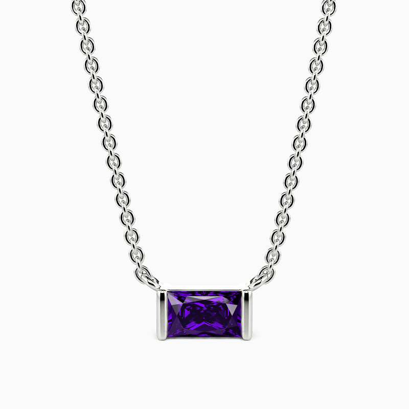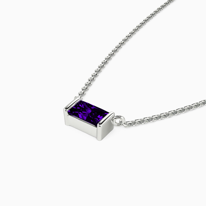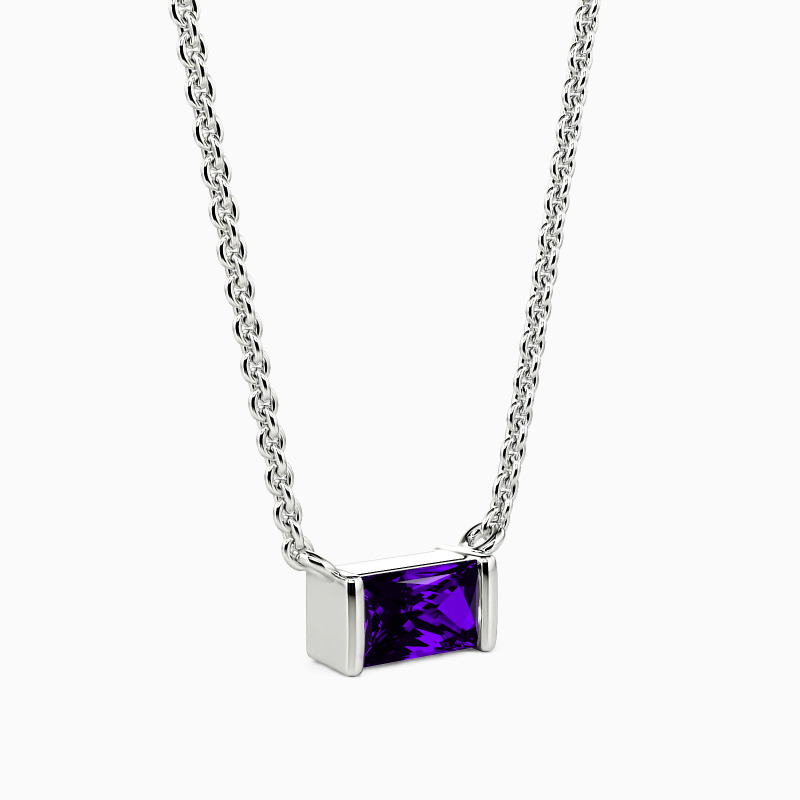 With an effortlessly sleek design, the necklace flaunts a glittering baguette-cut stone in the center. It bounces light from every angle in a  channel setting. This incredible piece is sure to add extra brilliance to your contemporary jewelry wardrobe.