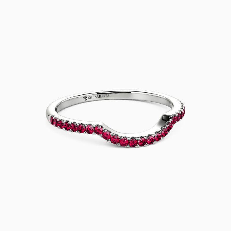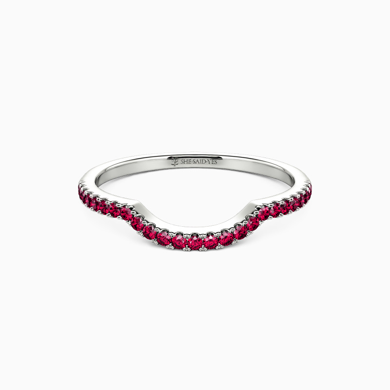 Infused with a vintage flair, this wedding ring offers an elegant style for anyone. The wedding band lined with round-cut gemstones that makes this ring full of love. With this lovely design and brilliant stones, this gorgeous ring is sure to capture her heart!