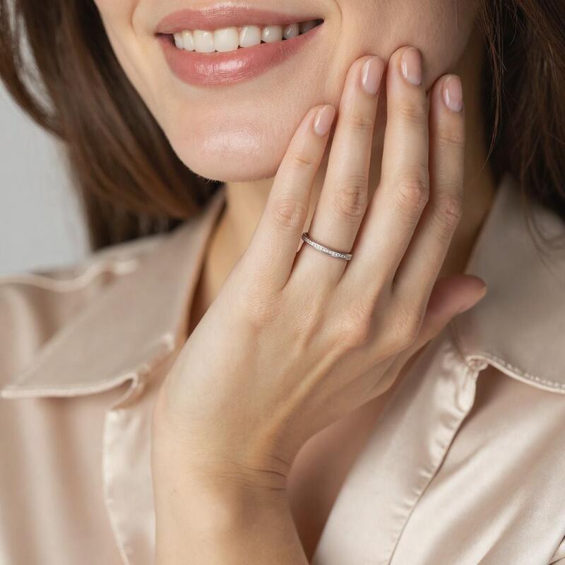 An ideal matching for your engagement to add extra brilliance. This wedding band features a row of tiny scintillating stones sitting in a pavé setting. Or you can wear it to make an iconic statement to lighten up your outfit. I'll be waiting for you to go through the long milky way and marry me!