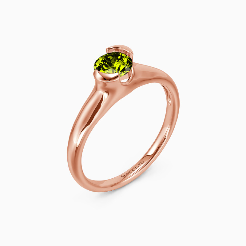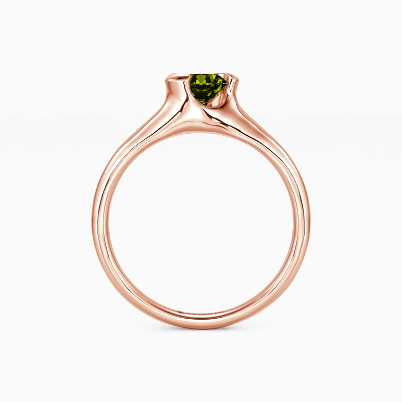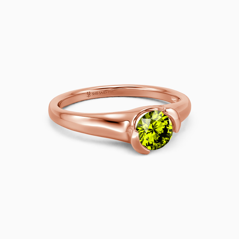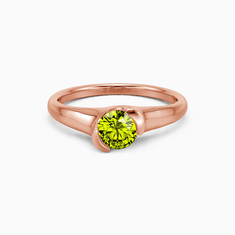As a classic modern engagement ring, this dainty piece features a gleaming round-cut stone in the middle, wrapped by a precious unsymmetrical half-bezel, secretly revealing a touch of sheen to show your unique contemporary style.