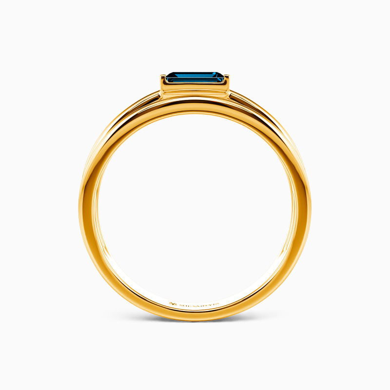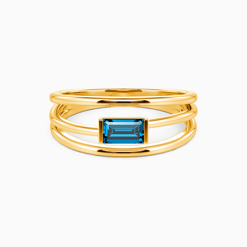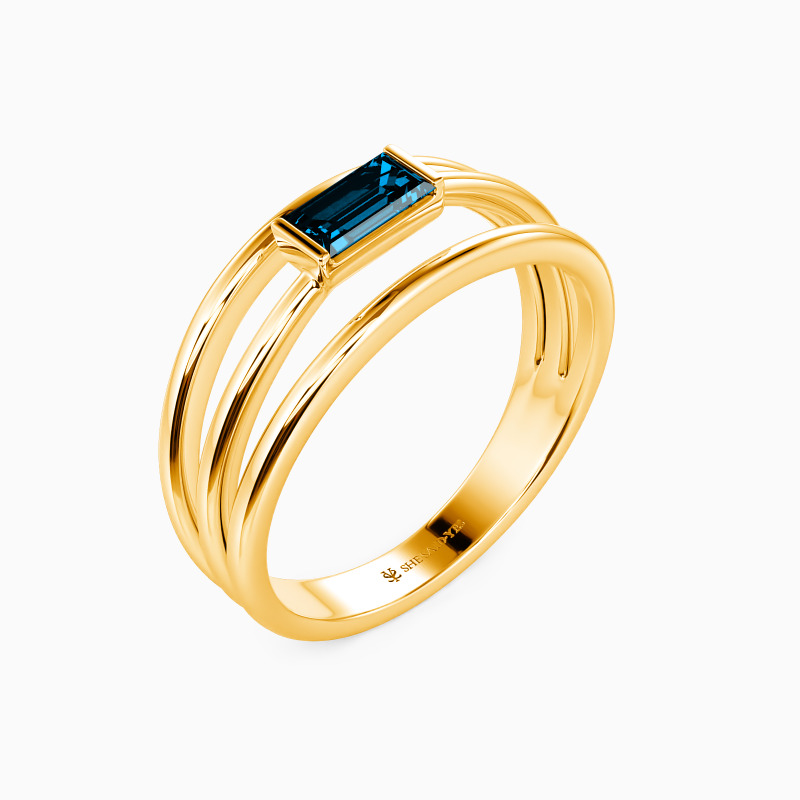 Three lustrous shanks are effortlessly stacked with a glimmering emerald-cut stone. Wear it alone permits you to show minimalistic glamour, and it also can perfectly stack with other rings. In addition, you can customize the color of metal and stone you like.