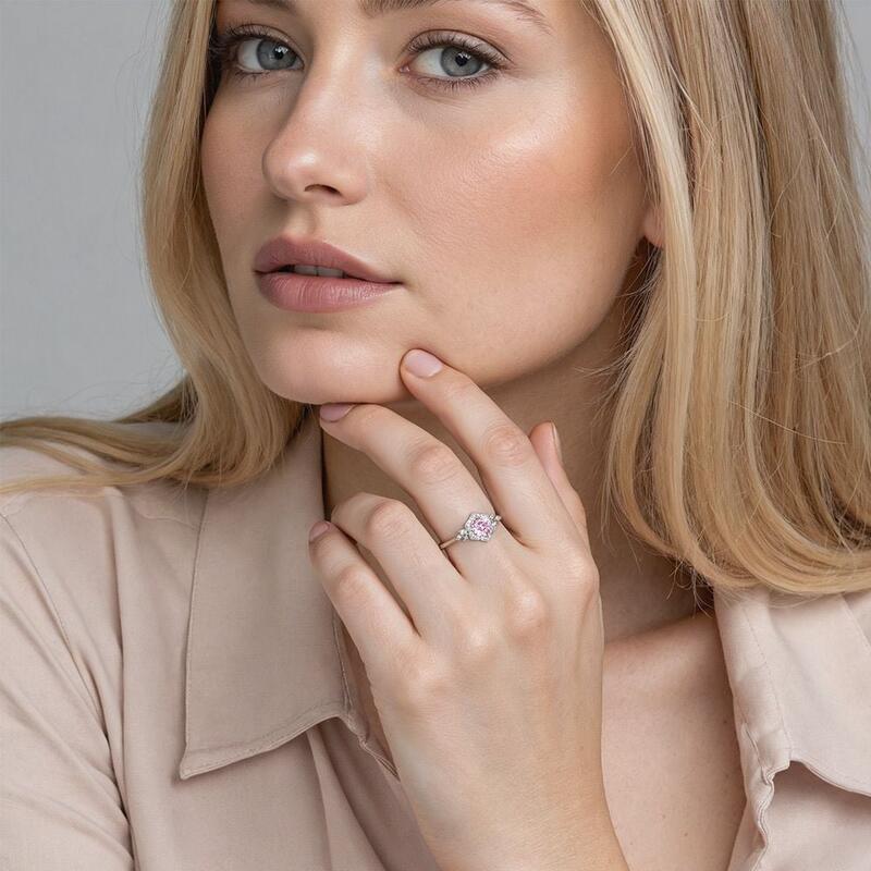With a brilliantly polished cathedral shank, this halo engagement ring is crafted in enduring precious metal with scintillating prong setting gem accents. Many glimmering leaves surround the head complete a floral look of the whole ring. Give this stylish ring to the beautiful her, and promise to be with her every spring.