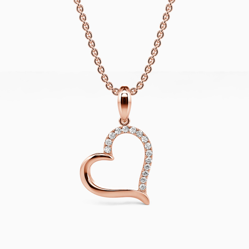 Minimalist and stylish. This pendant necklace perfectly draws a heart silhouette with a soft radiance. With half of buffed mental and the other half with round paved stone, this bold and straightforward pendant will fit all your daily looks.