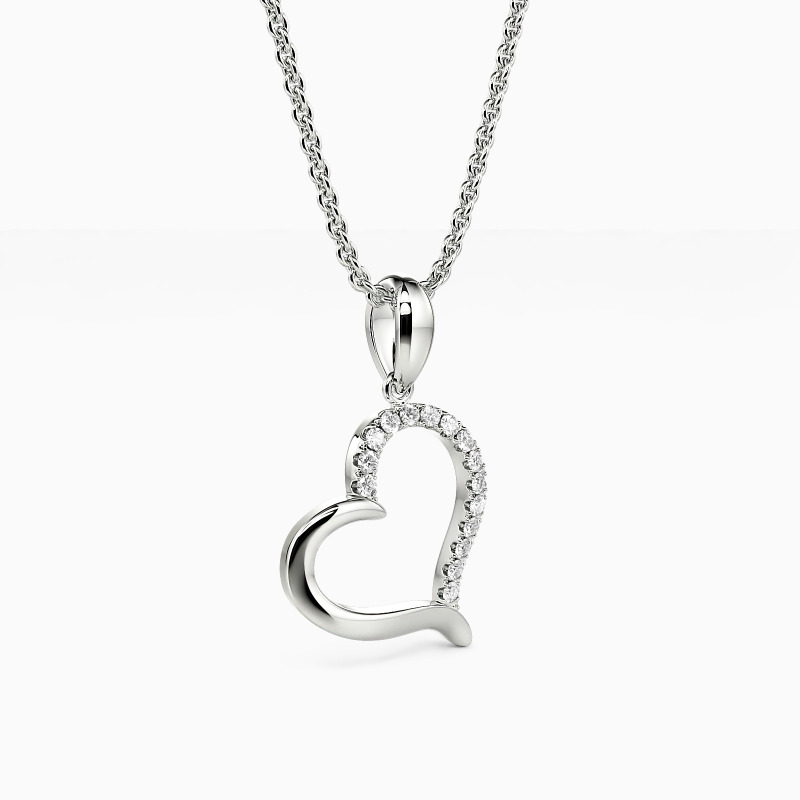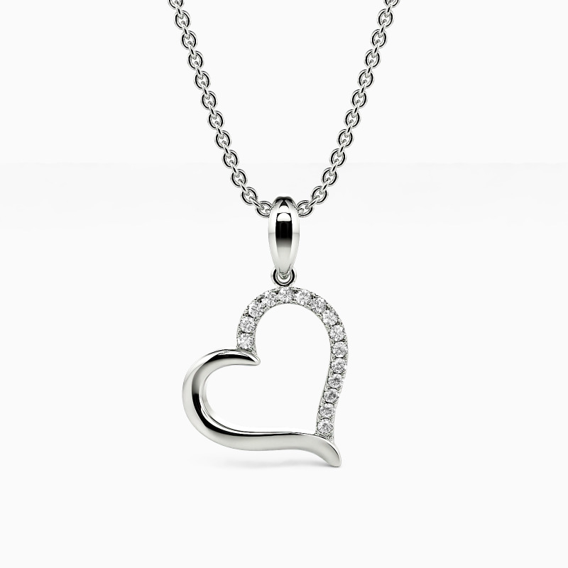 Minimalist and stylish. This pendant necklace perfectly draws a heart silhouette with a soft radiance. With half of buffed mental and the other half with round paved stone, this bold and straightforward pendant will fit all your daily looks.