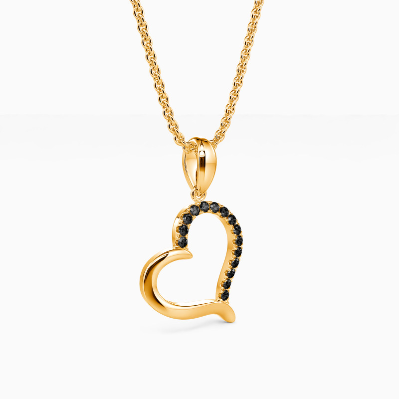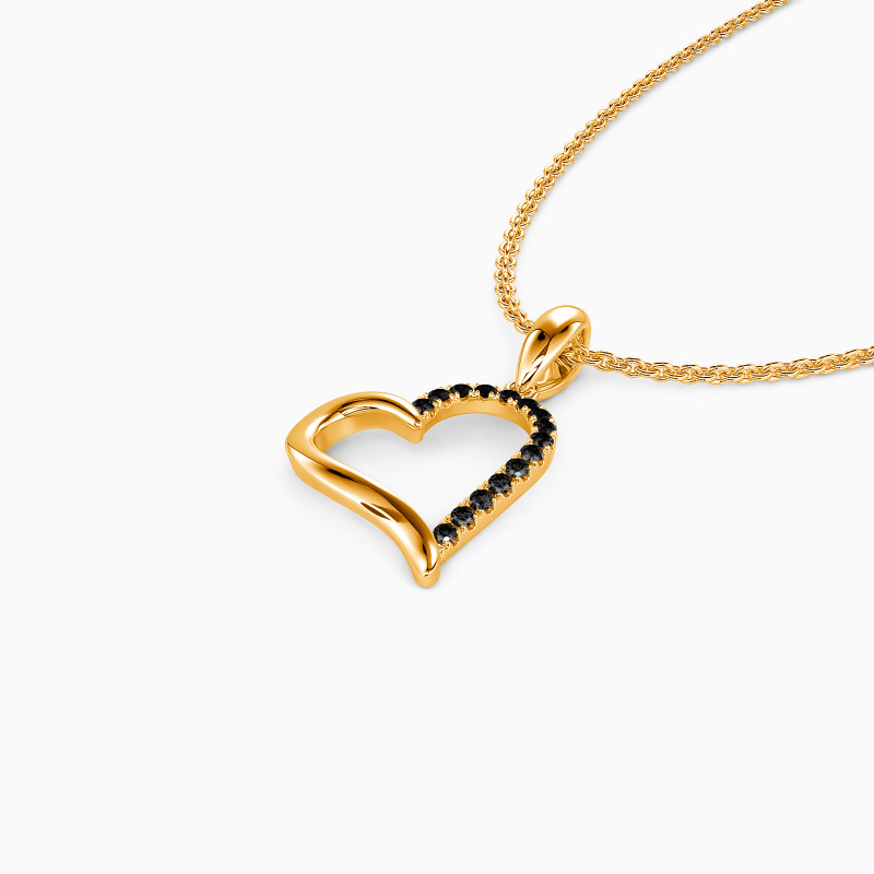 Minimalist and stylish. This pendant necklace perfectly draws a heart silhouette with a soft radiance. With half of buffed mental and the other half with round paved stone, this bold and straightforward pendant will fit all your daily looks.