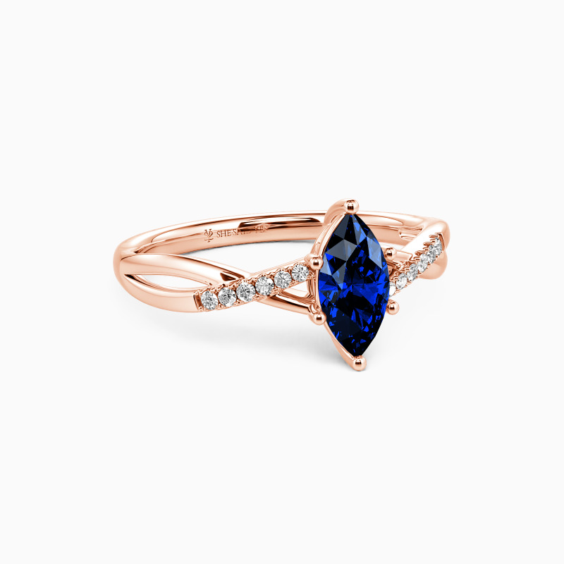 Elegant and classical, this glistening engagement ring definitely belongs to a charming angel. A marquise-cut gem stands perfectly on the cross-over shank paved with gleaming stones in one ribbon, adding a touch of grace and highlighting its shimmering beauty concurrently. Cherished love is only for you.