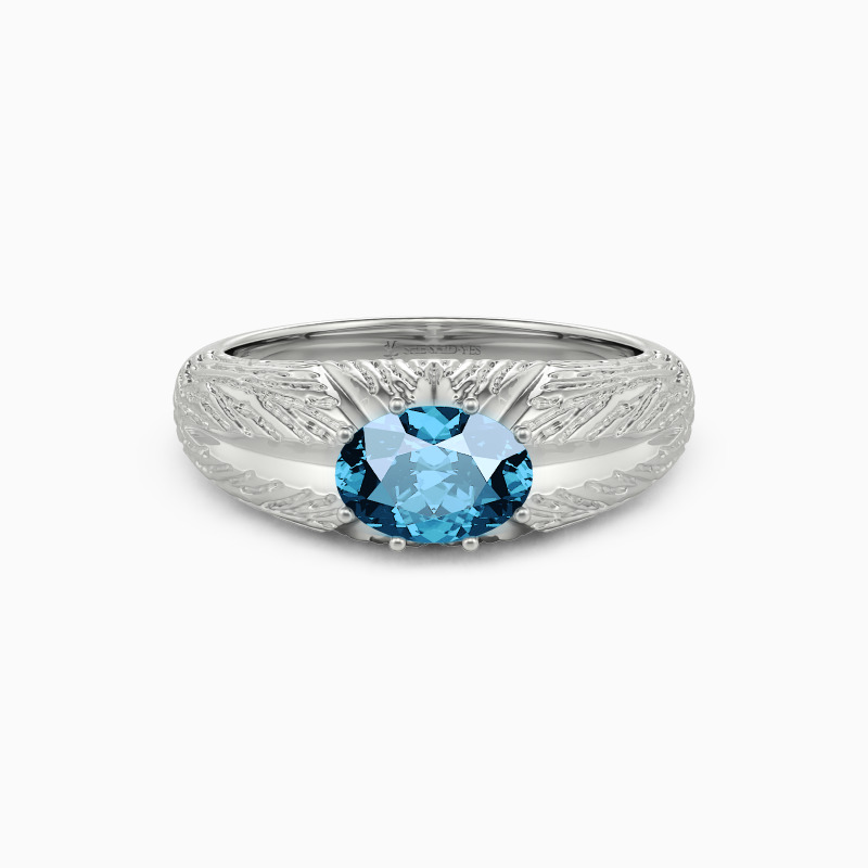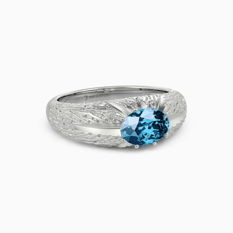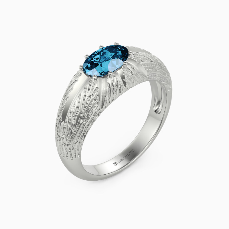 Captivated your sight by the distinctive design, this dome ring showcases the ultimate brilliance of SHE·SAID·YES. It embeds a sparkling oval-cut gem engraved with eight shiny rays from the center on the intricately carved texture on the dome top. This vintage ring of unparalleled radiance will lead you to travel through the metaverse.