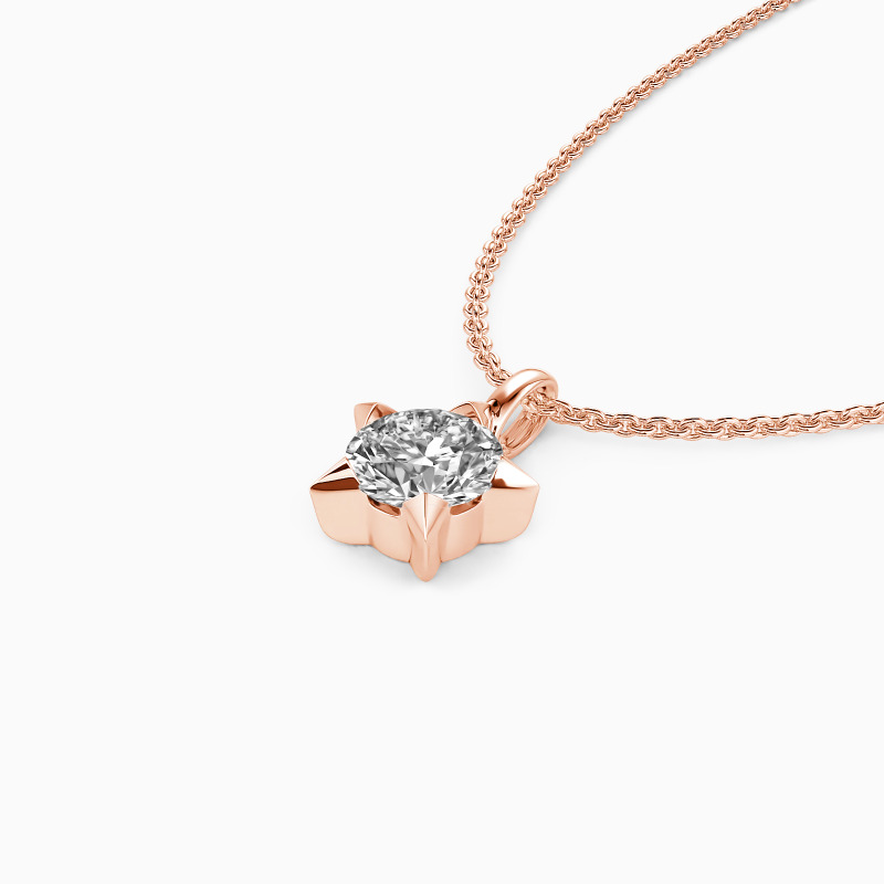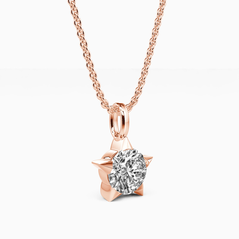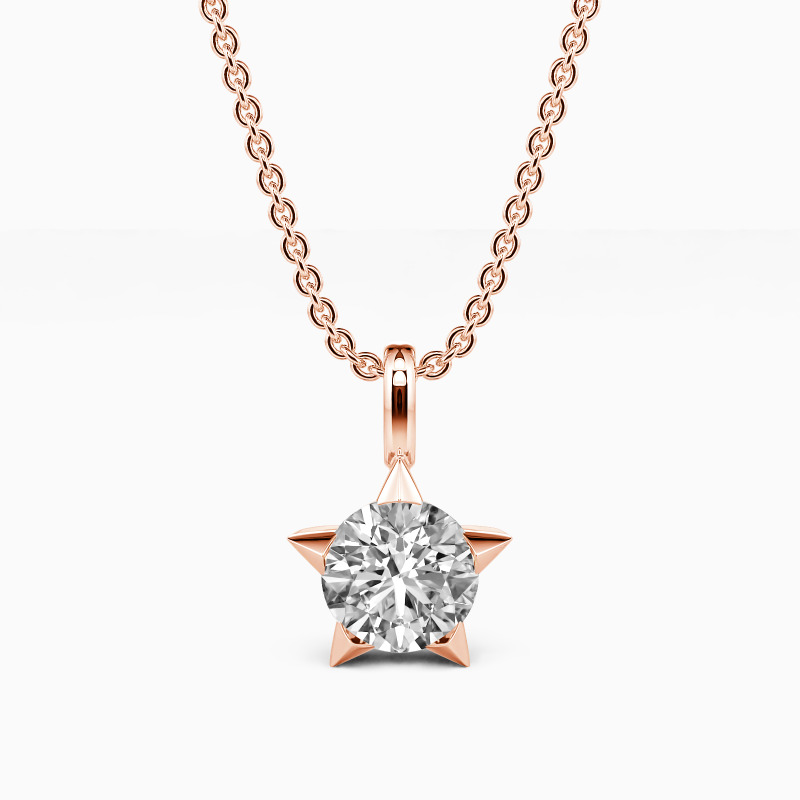 Existing in its timeless and minimalist, this pendant studs a brilliant round-cut stone encased by a delicate five prongs. Showing an appealing star silhouette with a glint of gloss, this dainty piece is the best everyday wearing accessory for you.