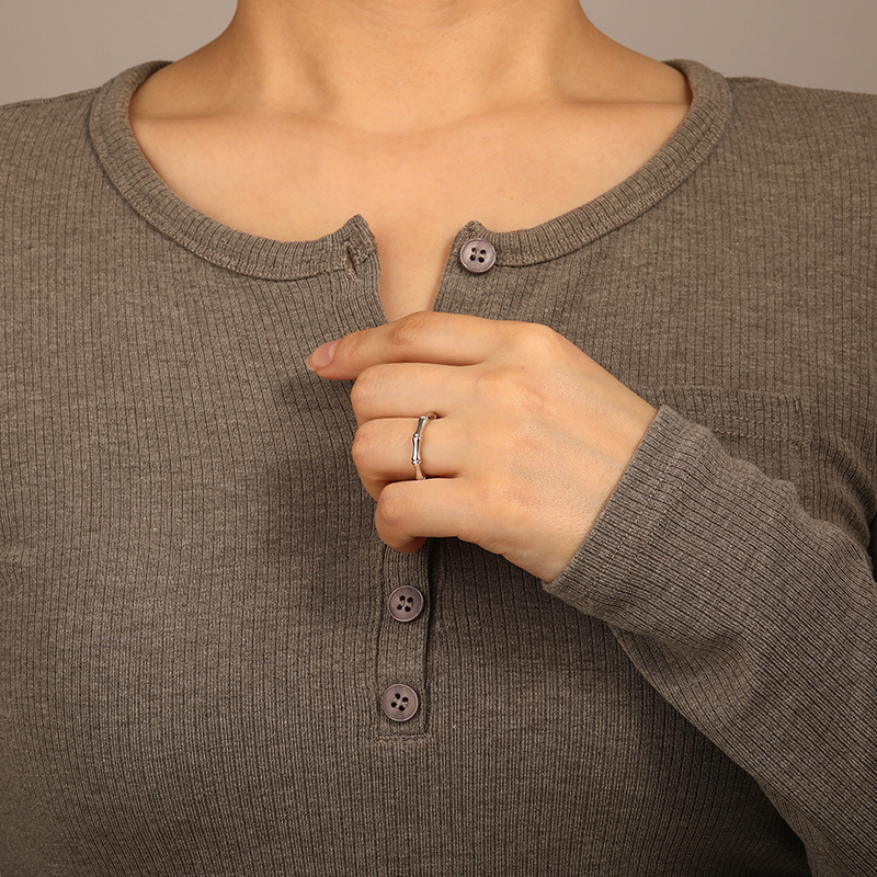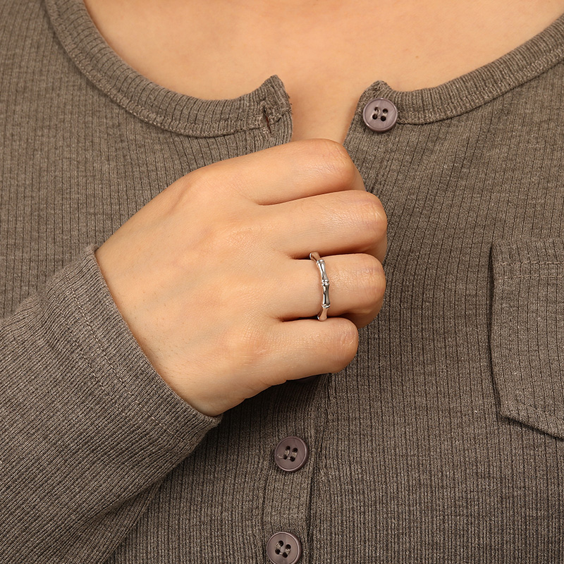 A delicate piece of art perfectly sketches the outline of the beautiful bamboo. This refined wedding ring is crafted with a polished metal of your choice, bending the entire bamboo branch into a ring with unique carves. A distinctive band for your wedding.