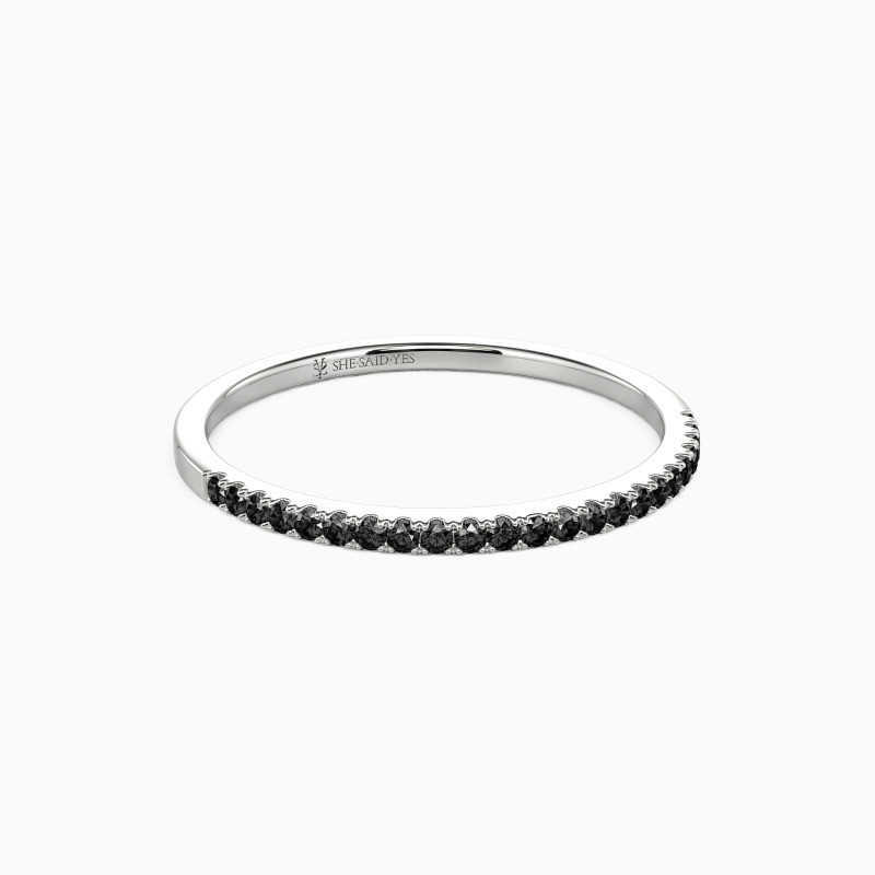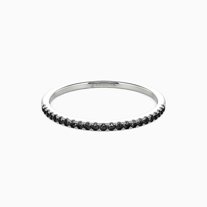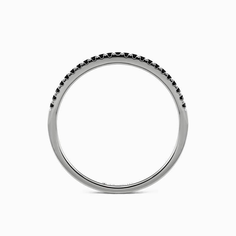 Gleaming accents and polished shank combine in a simple design you can wear every day. You could never go wrong with such a classic half eternity wedding band. It portrays your elegance effortlessly in its shining beauty. Stacking with your engagement ring or wearing it solo is both an ideal choice; this timeless design is a dazzling symbol of your love.