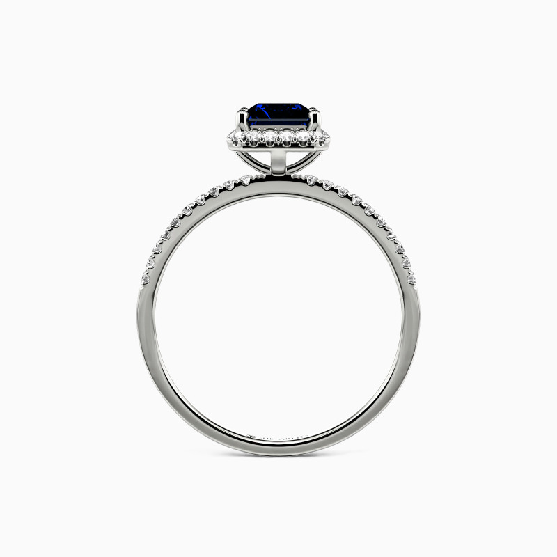 On the most important day, surprise her with this halo engagement ring. This exquisite style sets a brilliant radiant-cut stone in the center, surrounded by a shimmering halo frame. Set along the shank is a well-arranged row of paved accents. The excellent luster reflects all the glamour this ring can take to you. Your vision of love has been restarted since the day you met her.