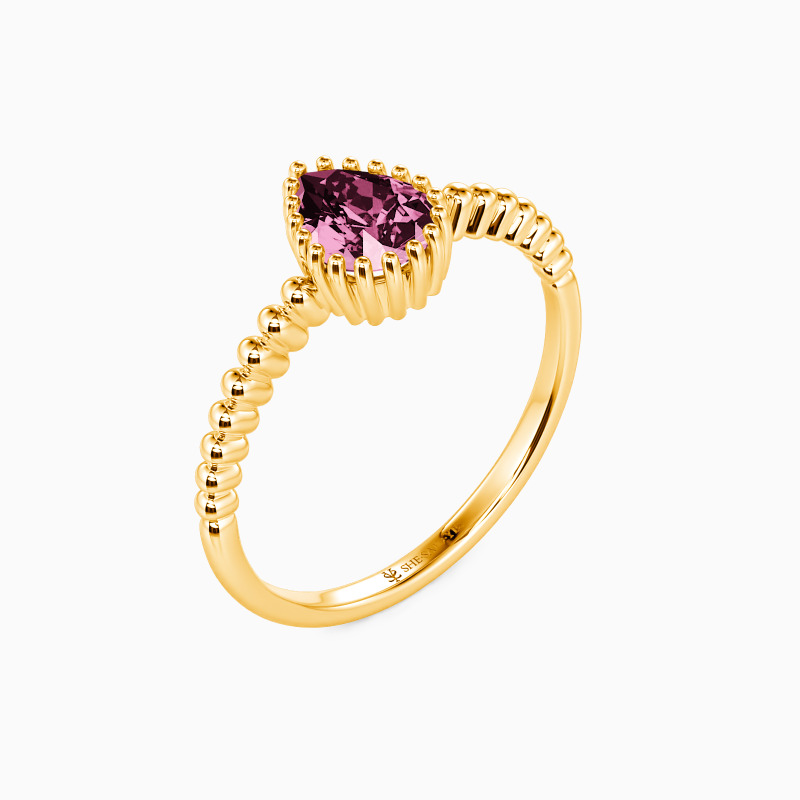 Add a touch of delicate charm to your look with this stackable ring. It has a pear-cut center stone in a contoured bezel setting studded on the unique beaded shank. You can wear it alone for a hint of glamour or stack it with other rings for versatile style.