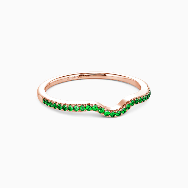 Delicate yet shimmering, this classic wedding band is versatile enough to add some sparkle to your engagement ring or stack with your current collections. The stones are round-cut to best showcase the beautiful sparkles, leaving eye-catching refinement behind. Add a little extra sparkle to your finger with this wedding band.