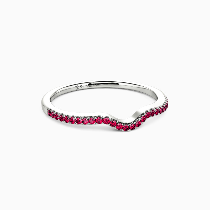 Delicate yet shimmering, this classic wedding band is versatile enough to add some sparkle to your engagement ring or stack with your current collections. The stones are round-cut to best showcase the beautiful sparkles, leaving eye-catching refinement behind. Add a little extra sparkle to your finger with this wedding band.