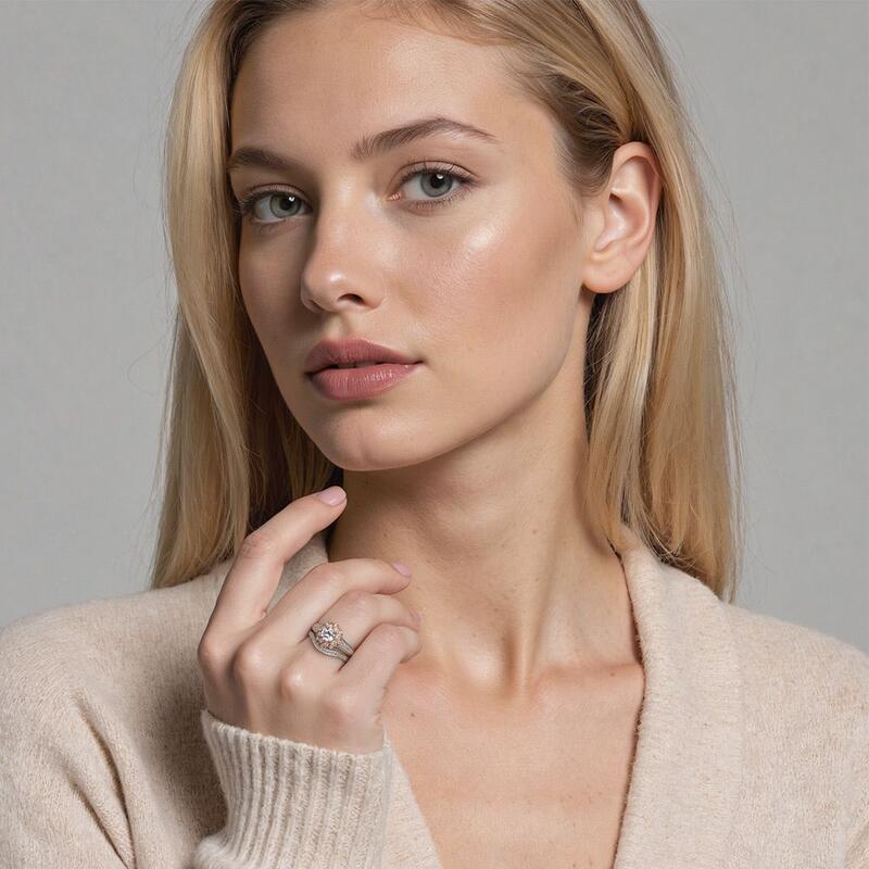 "With Every Beat of My Heart" Round Cut 2pcs Cluster Bridal Set