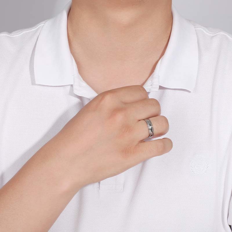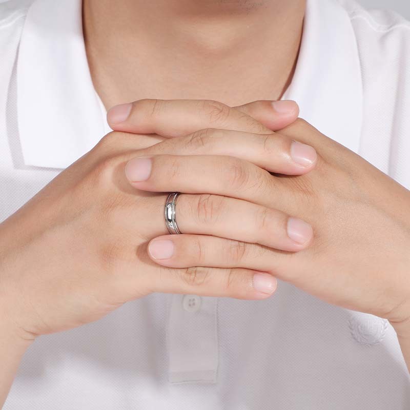 Simple yet striking, this timeless wedding band is sure to draw your attention with its classic appeal. It is lustrous with a highly polished shank. Eight shimmering round-cut accents are set in a bezel setting to enhance its brilliance, while the milgrain adds vintage details to show your gentleness.
