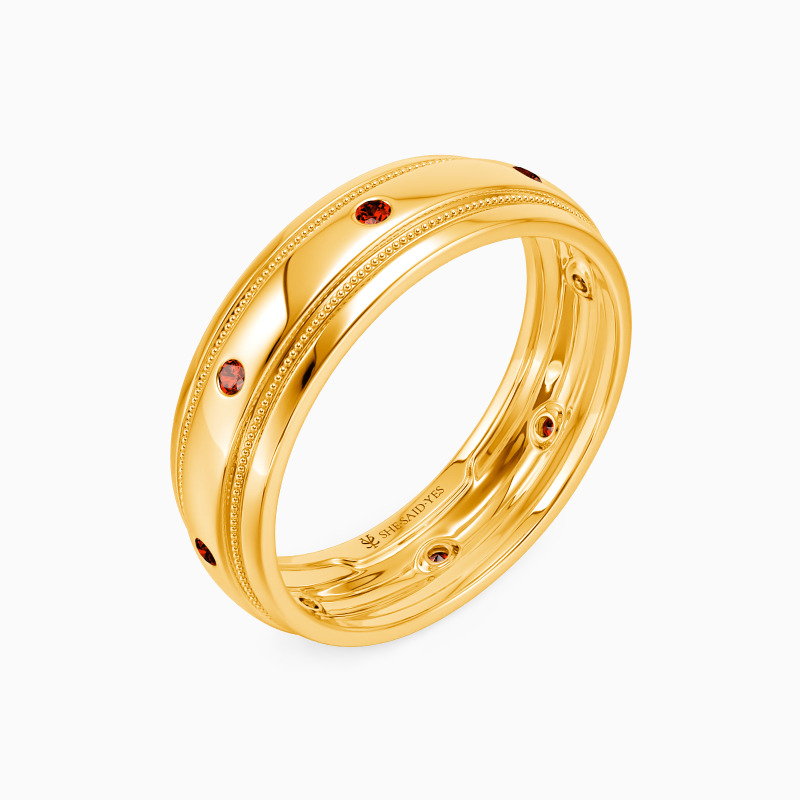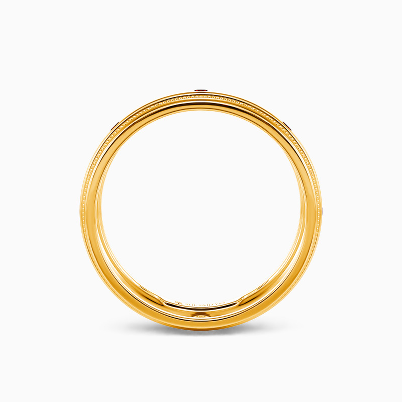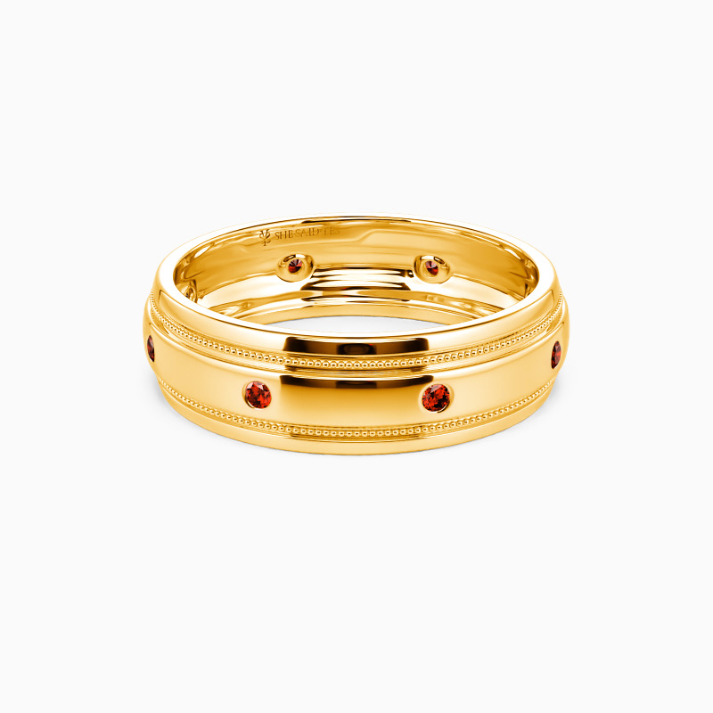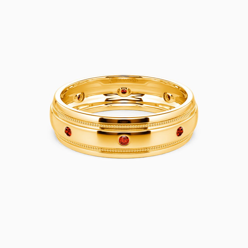 Simple yet striking, this timeless wedding band is sure to draw your attention with its classic appeal. It is lustrous with a highly polished shank. Eight shimmering round-cut accents are set in a bezel setting to enhance its brilliance, while the milgrain adds vintage details to show your gentleness.