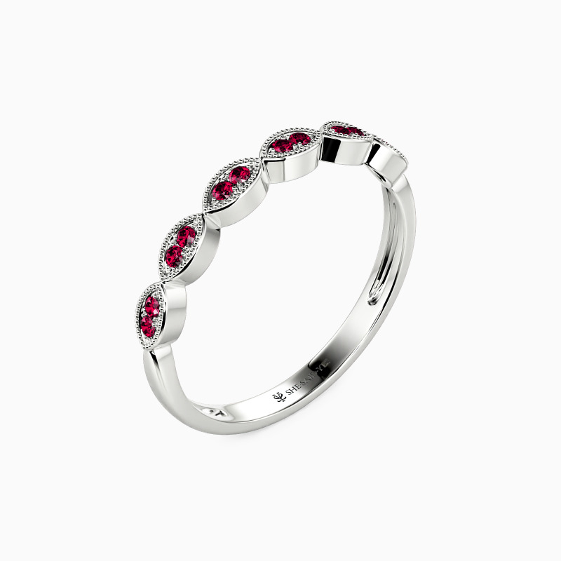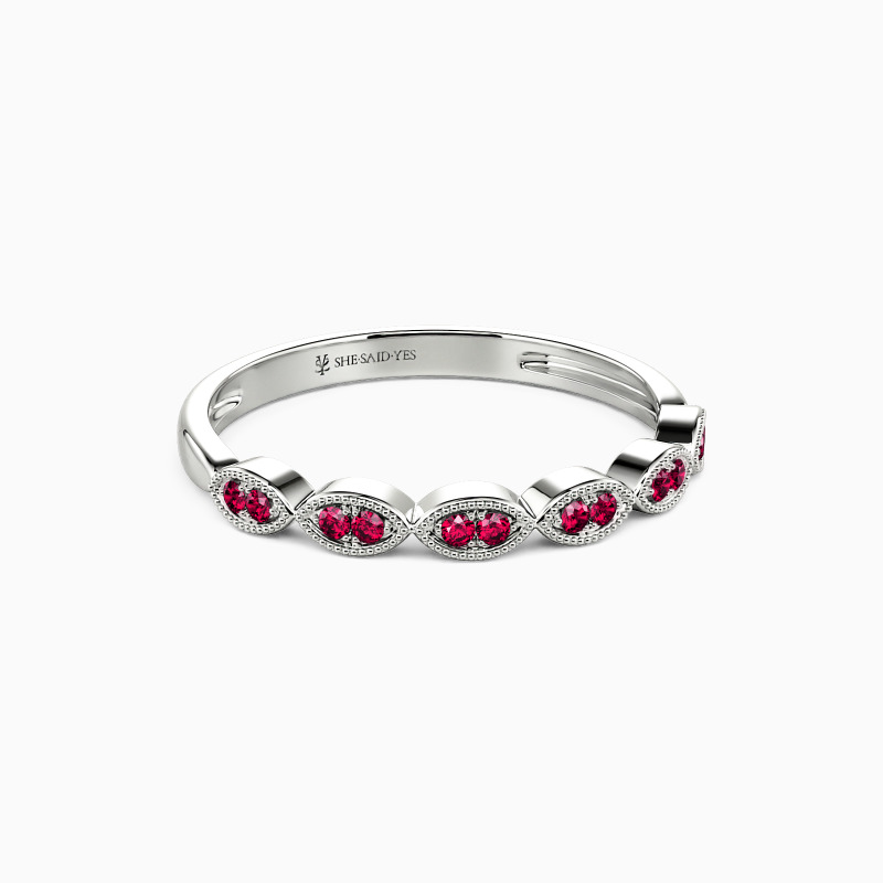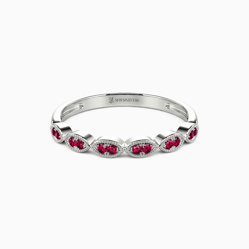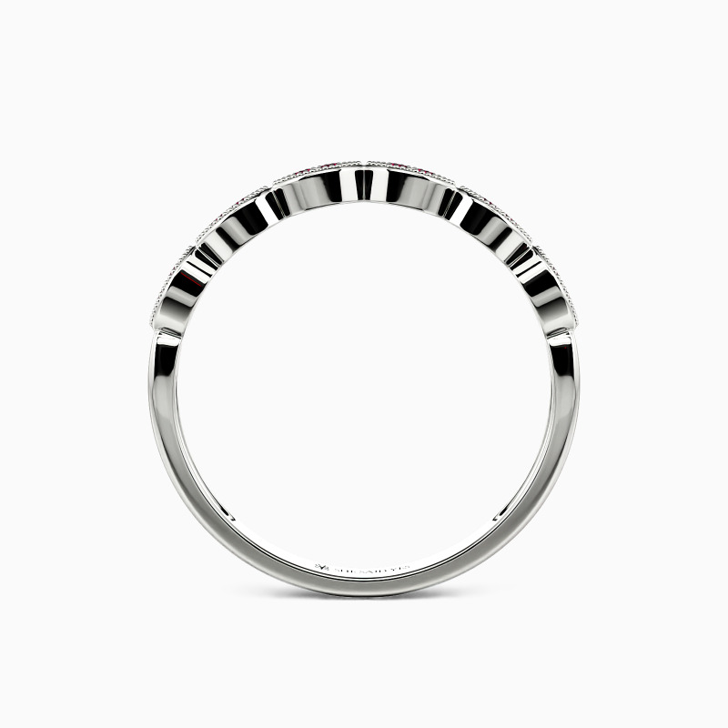 A perfect combination of fine detailing and delicate craftsmanship. Shimmering round-cut stones are held in a prong setting, making the brilliance extend all the way around the band. And with exquisite milgrain embellishments, the whole ring has a nuanced look. It is suitable for stacking with your engagement ring or wearing solo.