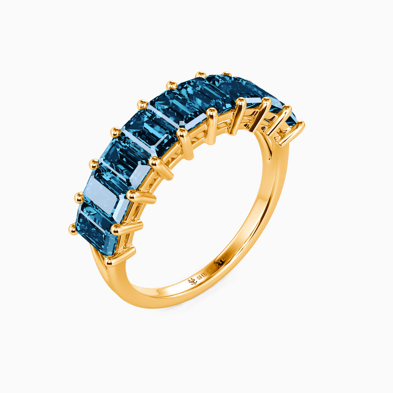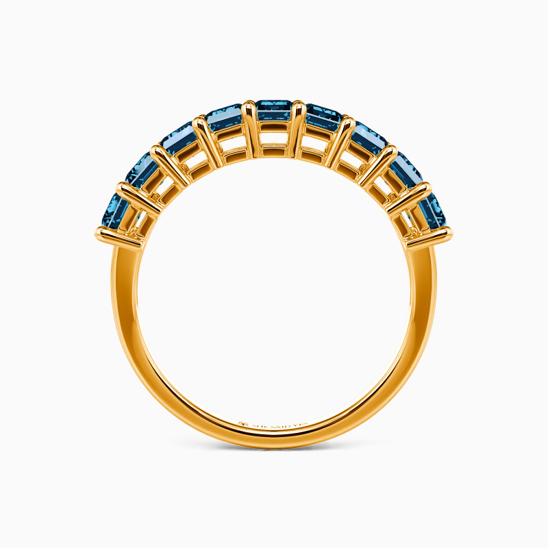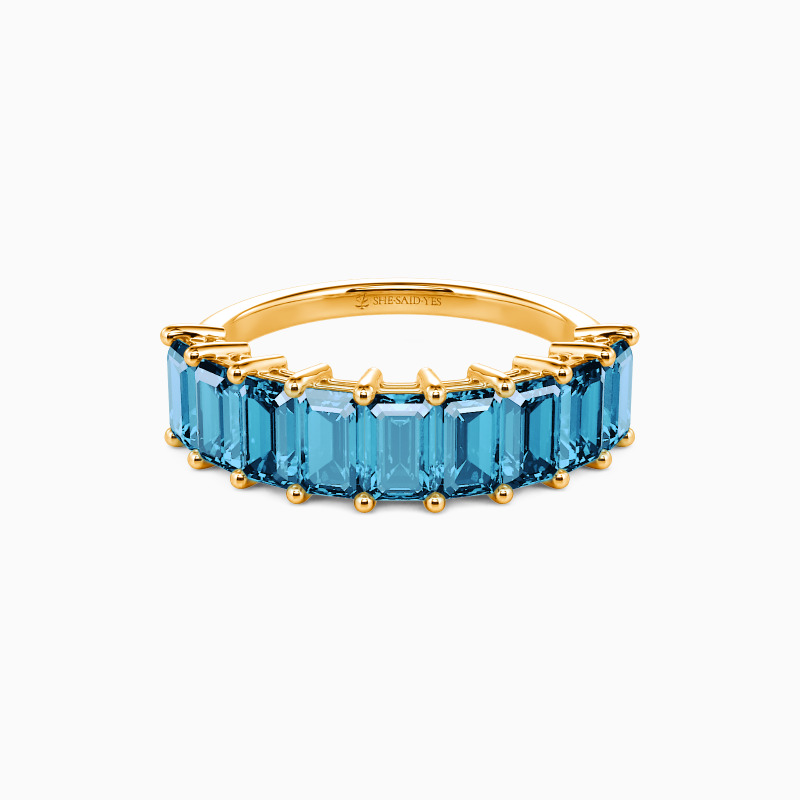 Contemporary design for the stylish bride-to-be. Nine fascinating emerald-cut accents studded in a prong setting offer you brilliance and beauty. This wedding band looks so attractive in this captivating design. Wearing it alone creates a chic look for you. Let this ring be the key of your locked world, and she is the key owner.