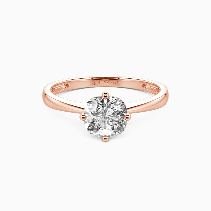 This brilliant Cushion cut solitaire features clean, finest lines and exquisitely tapered shoulders arching toward the center stone. With this solitaire design, you will forever be in that shine state of mind.