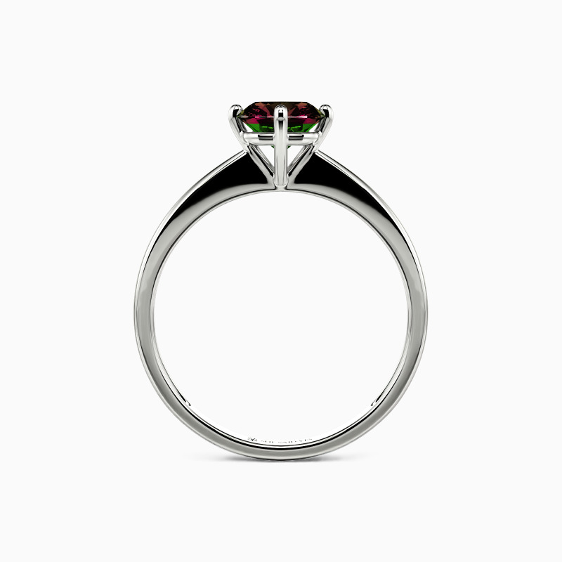 This brilliant Cushion cut solitaire features clean, finest lines and exquisitely tapered shoulders arching toward the center stone. With this solitaire design, you will forever be in that shine state of mind.