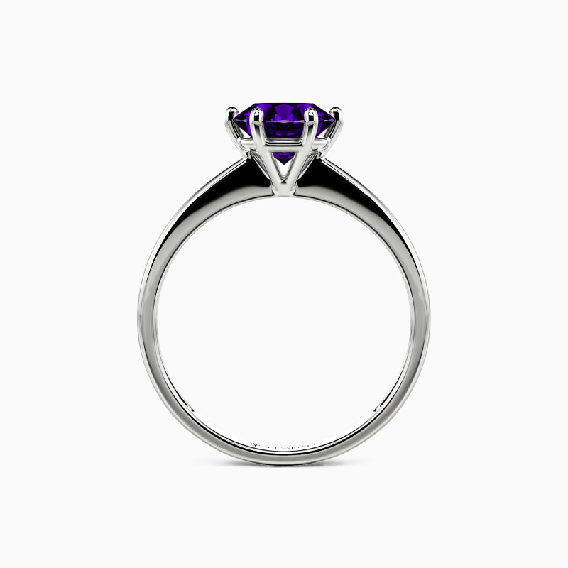 This brilliant six-prong solitaire features clean, finest lines and exquisitely tapered shoulders arching toward the center stone. With this solitaire design, you will forever be in that shine state of mind.