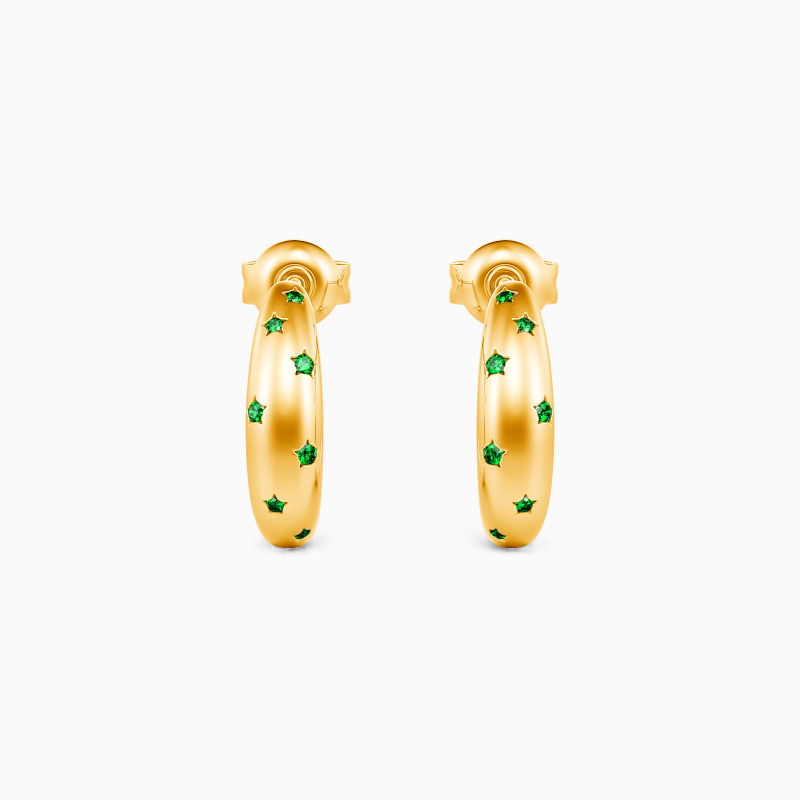 These gorgeous hoop earrings complement any style, day or night. The polished finish and scattered accents add a unique touch to the chic style. Each hoop is decorated with ten round-cut stones wrapped in a star pattern, shining in the midnight and your heart. You can also wear it at the party to catch all the focus!