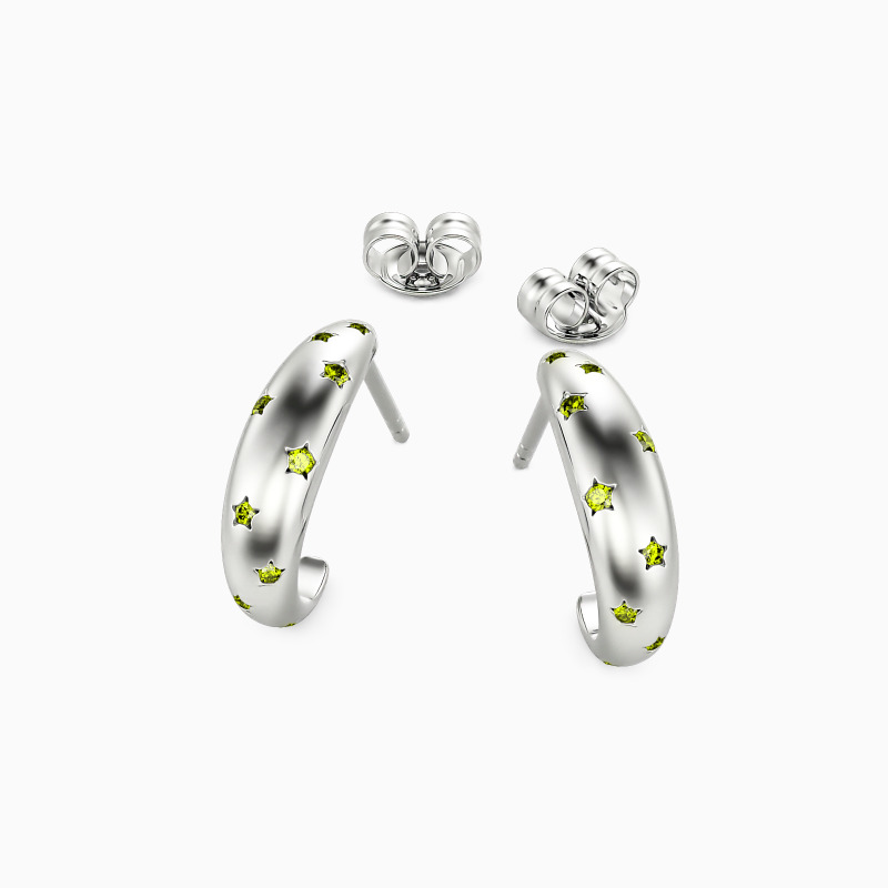 These gorgeous hoop earrings complement any style, day or night. The polished finish and scattered accents add a unique touch to the chic style. Each hoop is decorated with ten round-cut stones wrapped in a star pattern, shining in the midnight and your heart. You can also wear it at the party to catch all the focus!