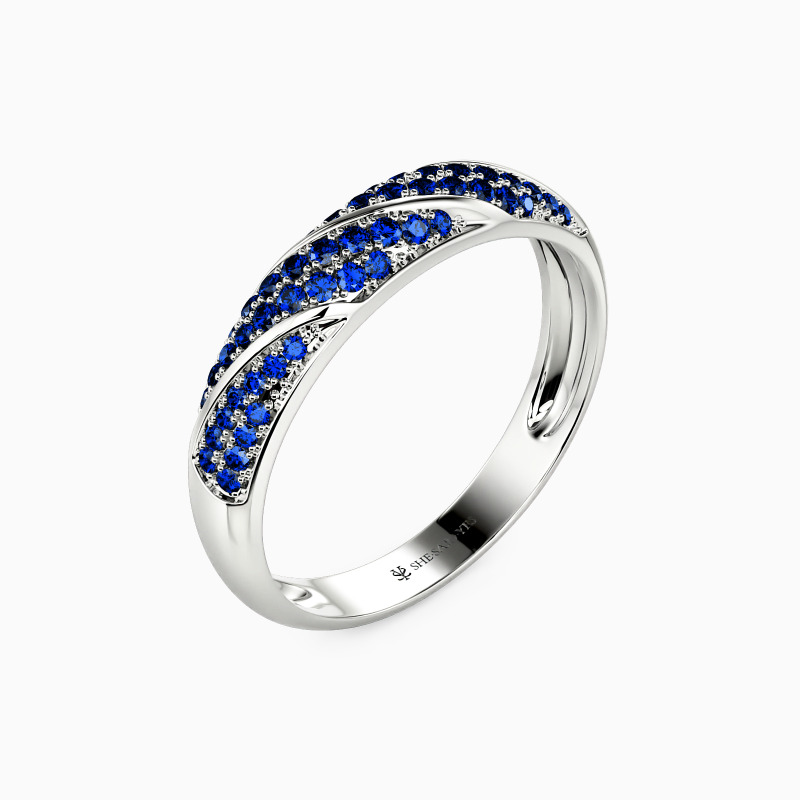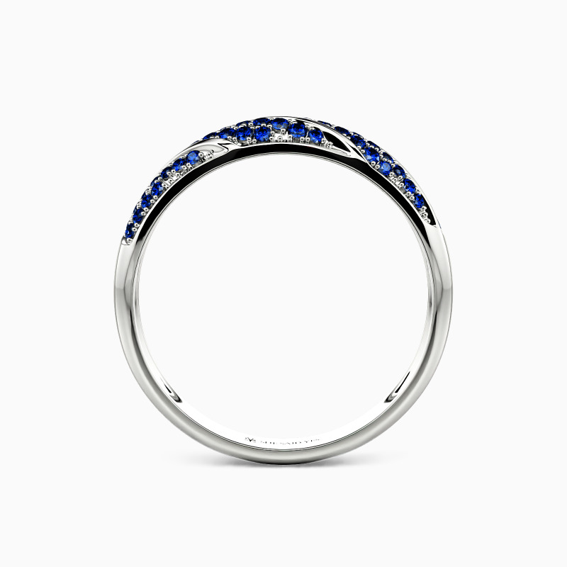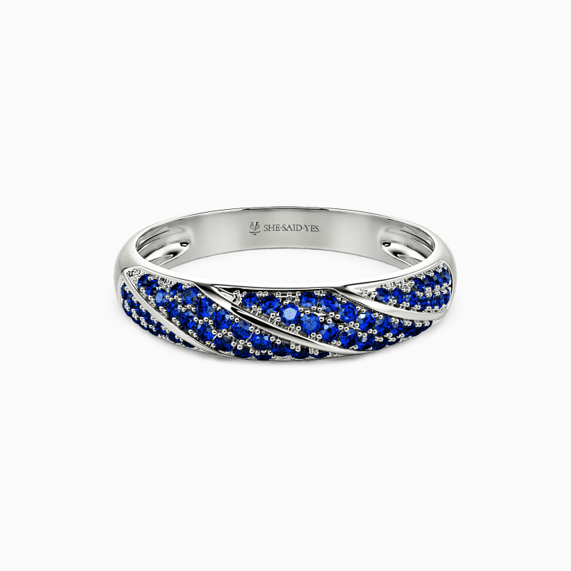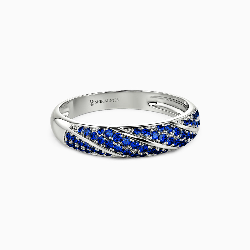 A stylish expression of your true love to witness the moments that bring you together. Shimmering round-cut accents in a pavé setting are separated by polished metal lines to create a geometric aesthetic vision. A stunning bridal set appears if you stack it with your engagement ring, or you can wear it alone to match attires.