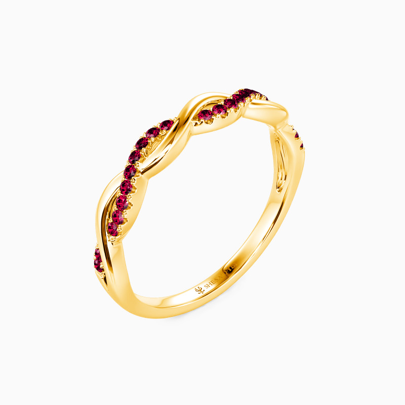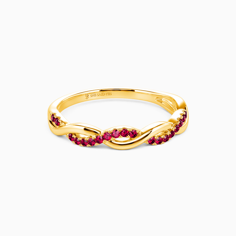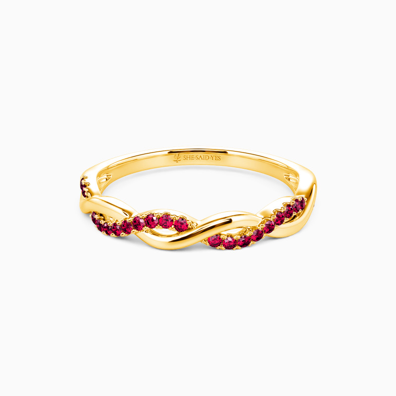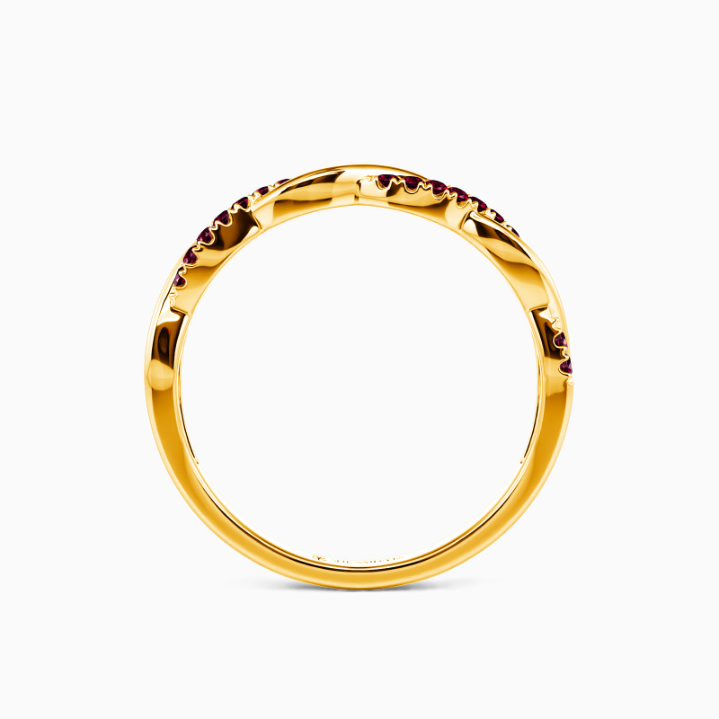 Contemporary design for the chic bride-to-be. This eye-catching wedding band is completed by one shank set with dazzling pavéd stones and the other a highly polished metal finish. They intertwine with each other to create this unique look and witness your exchanged souls. Love is giving freedom, and I promise you to love you all forever.