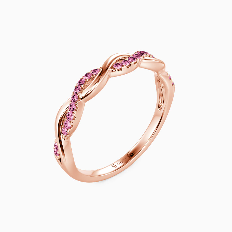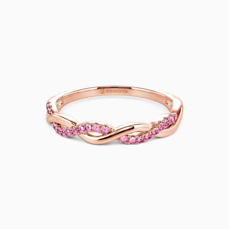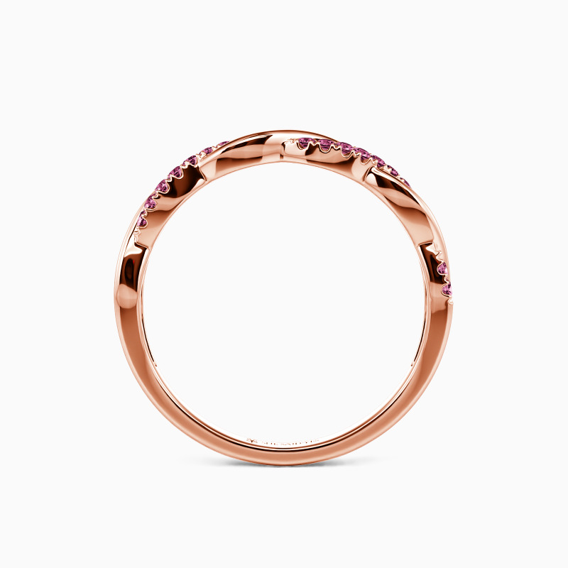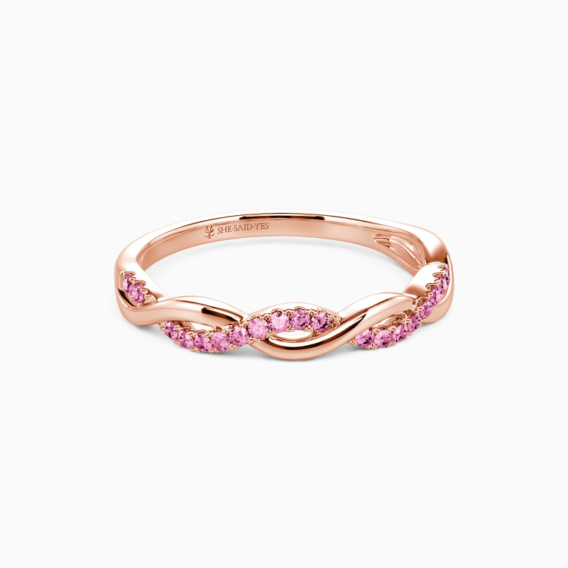 Contemporary design for the chic bride-to-be. This eye-catching wedding band is completed by one shank set with dazzling pavéd stones and the other a highly polished metal finish. They intertwine with each other to create this unique look and witness your exchanged souls. Love is giving freedom, and I promise you to love you all forever.