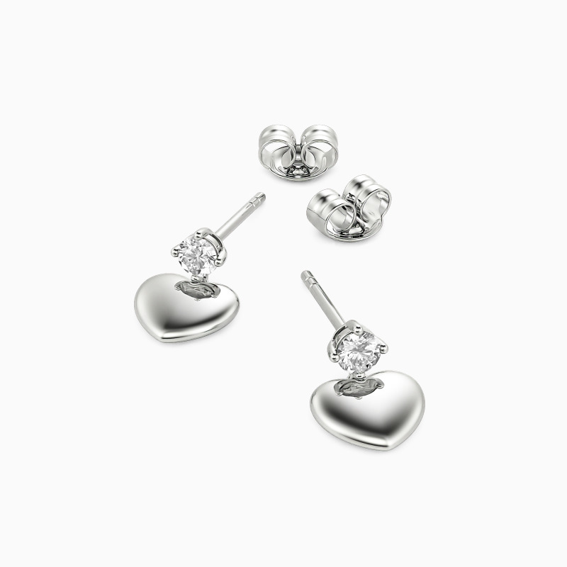 Love is definitely in the ear with these beautiful drop earrings. An ideal gift for someone you truly love. A tiny shimmering stone is on the top of a simple heart design, forming these sweet and stylish pieces. A sensational gift for your girl and lady, and a staple for any girl's jewelry collection.