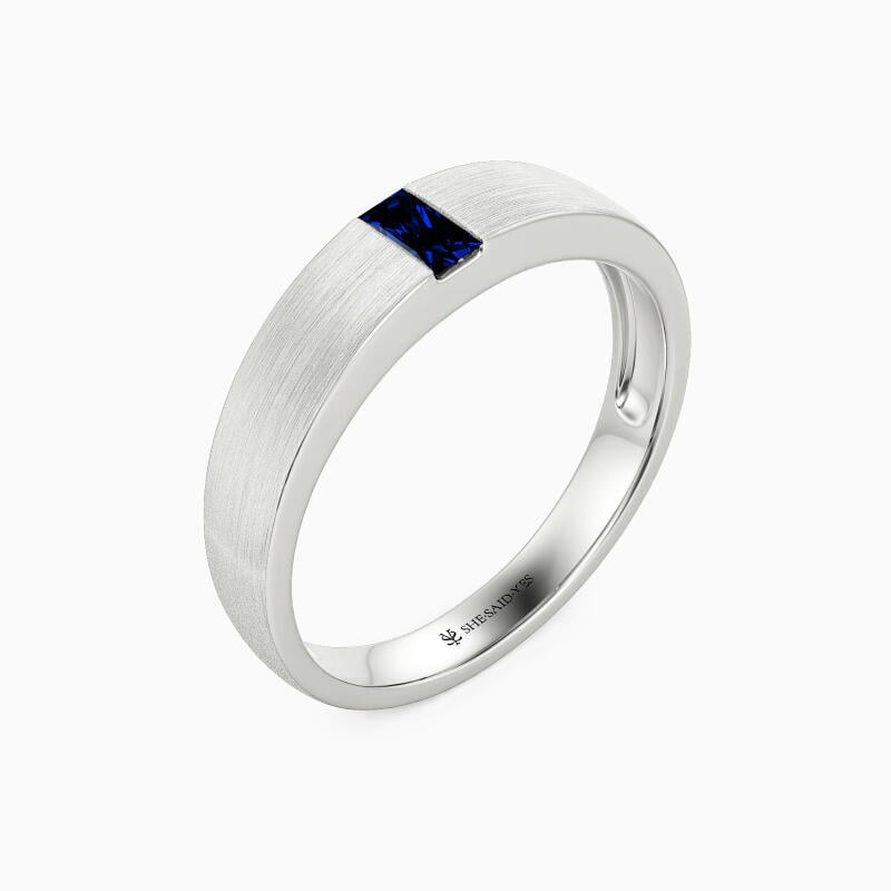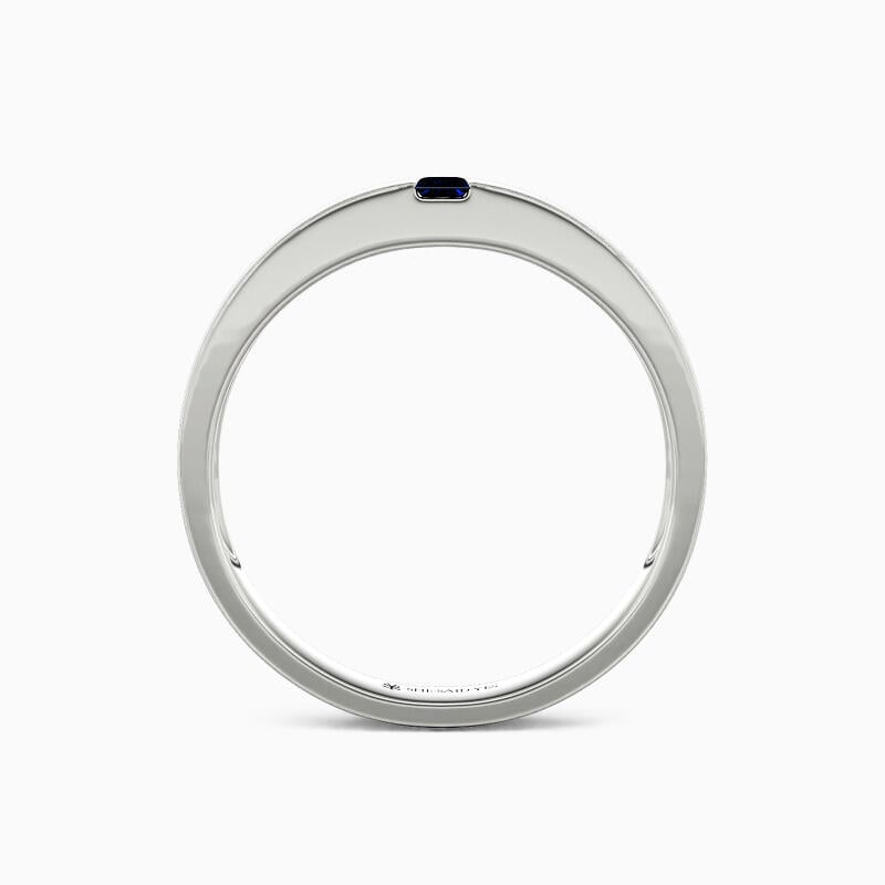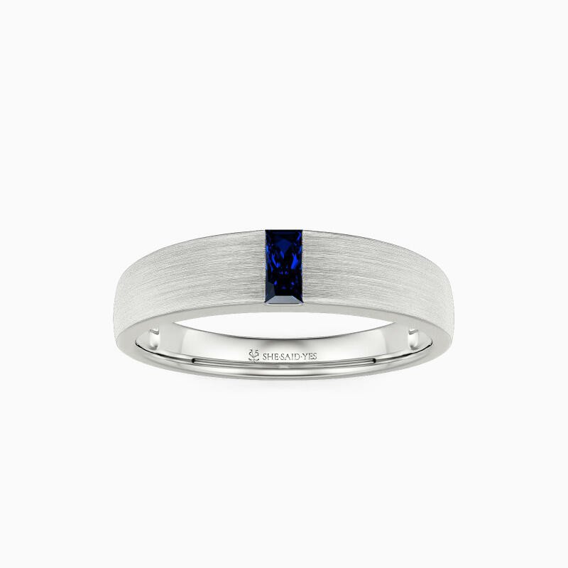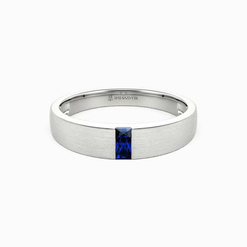 Simple yet stylish. Existing in the minimalist design and modern style, this wedding band features an emerald-cut gem in the tension setting on the matte shank. With the flat edges at all points, this precious piece from SHE·SAID·YES will provide you with comfort and a touch of masculinity.